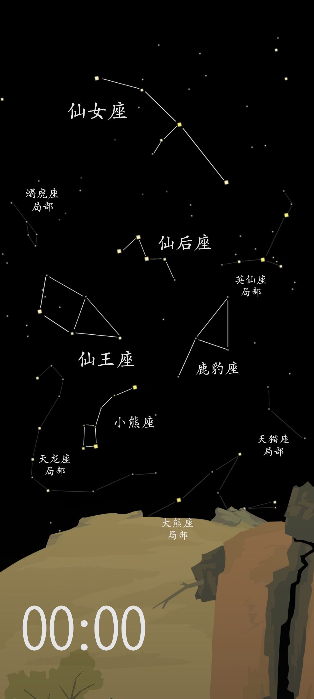 晚11:00能收集到的完整星座有:蝎虎座、仙女座、小熊座、鹿豹座、仙王座和仙后座共计6个星座。