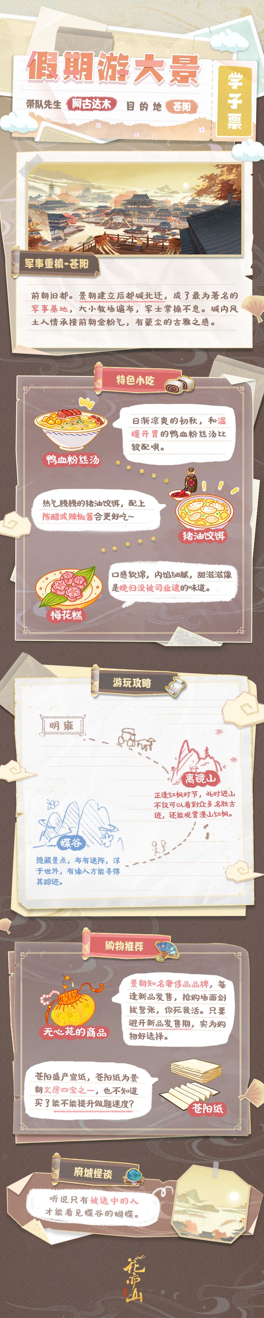 与苍阳府有关的城市怪谈版本颇多。有传言称,秋家世代隐居的蝶谷位于此地,然其布有迷阵,浮于世外,有缘人方能寻得其踪迹。