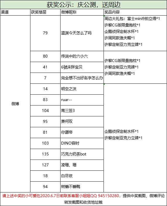 请中奖的小可爱在2020.7.7日前联系客服小姐姐QQ:945150280,提供中奖截图、微博评论转发截图和收货地址哦。