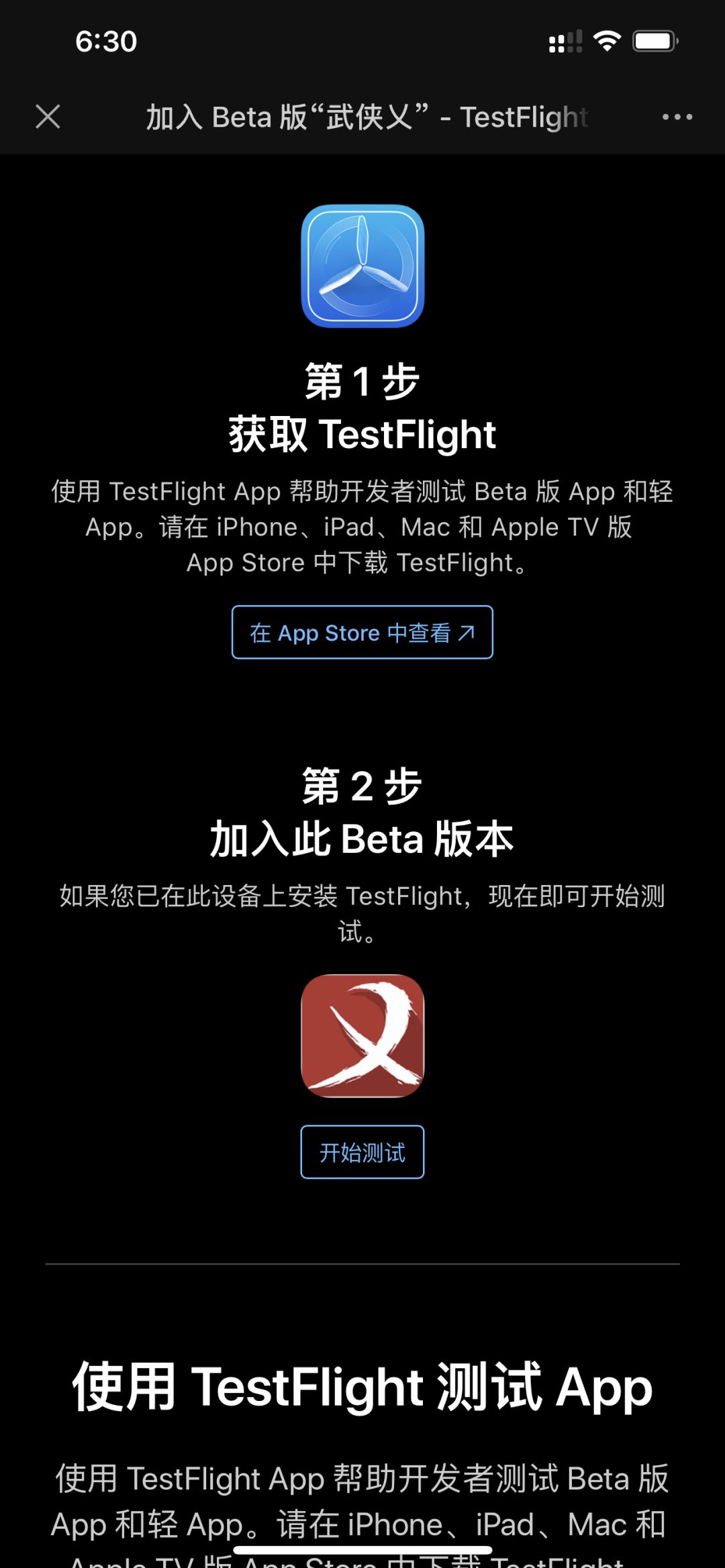 IOS用户需要用网页打开武侠乂(测试服) - 游戏下载 | TapTap 发现好游戏看到下图的连接才能进入下载
