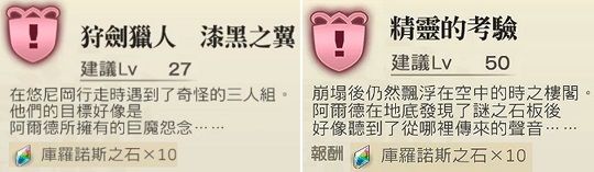 ①任务:王都尤尼冈《狩剑猎人 漆黑之翼》,时之楼阁遗址地下《精灵的考验》(通关后,详见第八部分)