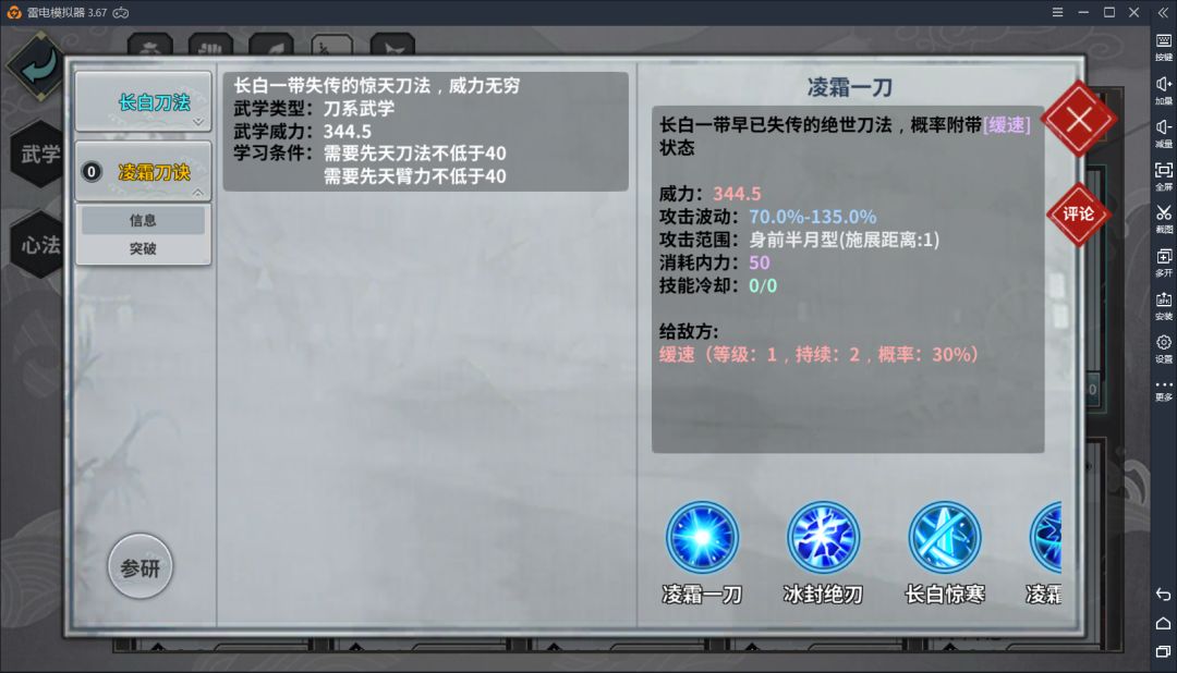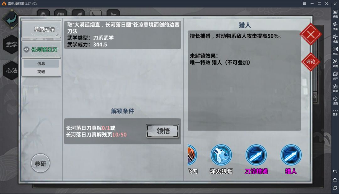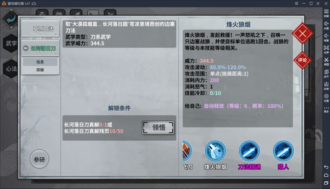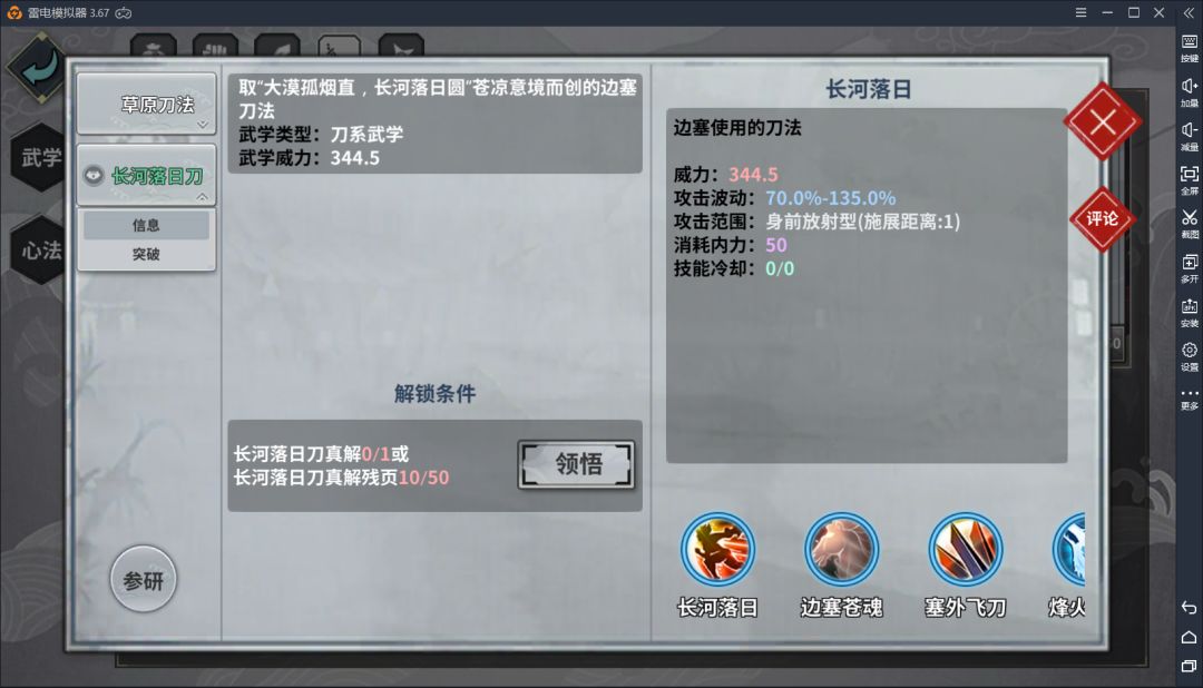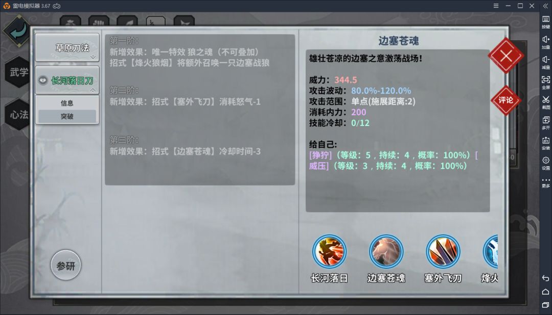 长河落日刀,草原刀法的进阶,简称狼刀,雁门关获取(?),威力344.5,倒数第二档武学功能辅助武学——你说说这个刀,它强嘛?