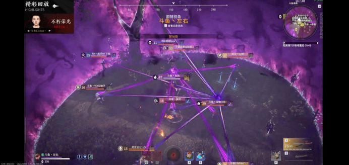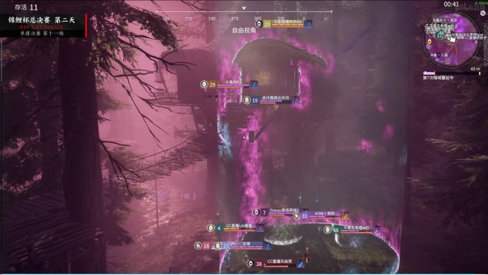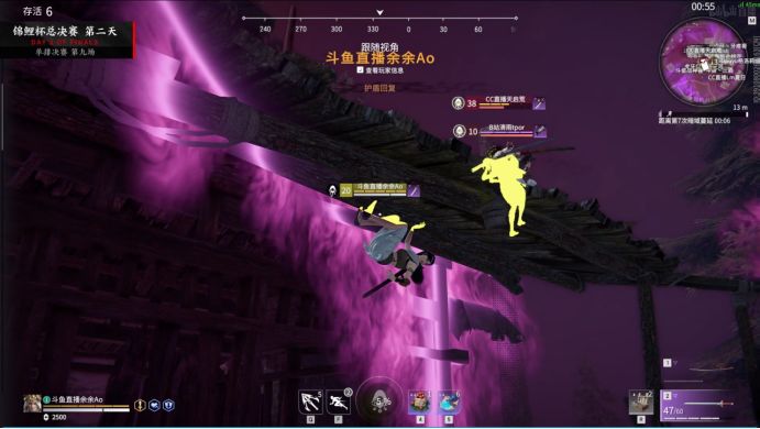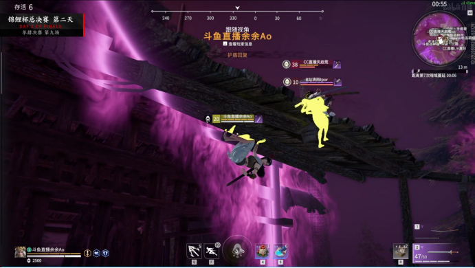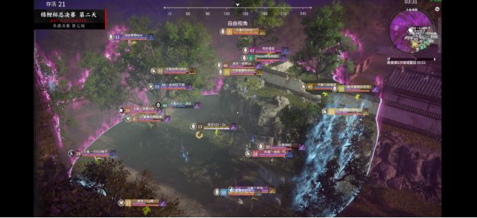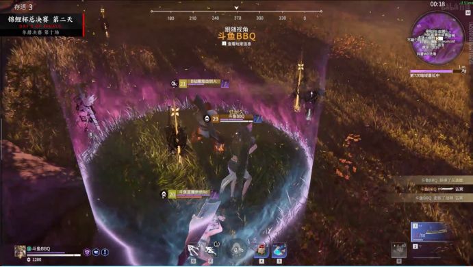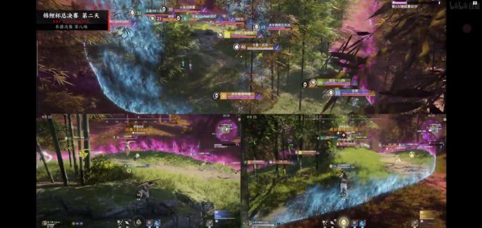 梅花桩之战险象环生,“B站清雨tpor”残血连续释放多次巽风震雷刀造成清场效果。“虎牙丶Ly呀”特木尔释放风之牢笼控制多人企图收割但不幸被击飞出安全区战死。最终“斗鱼BBQ”借力打力以微弱血量优势反杀成功斩获不朽荣光。