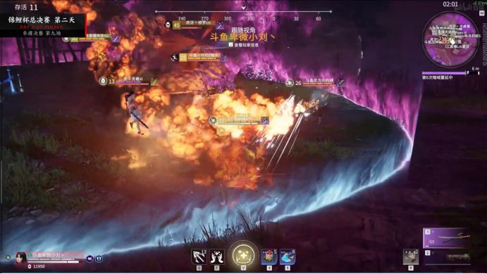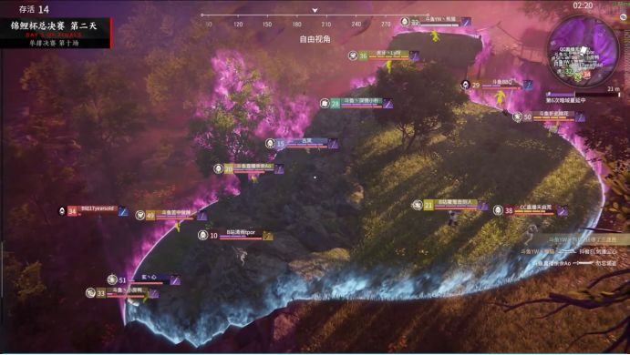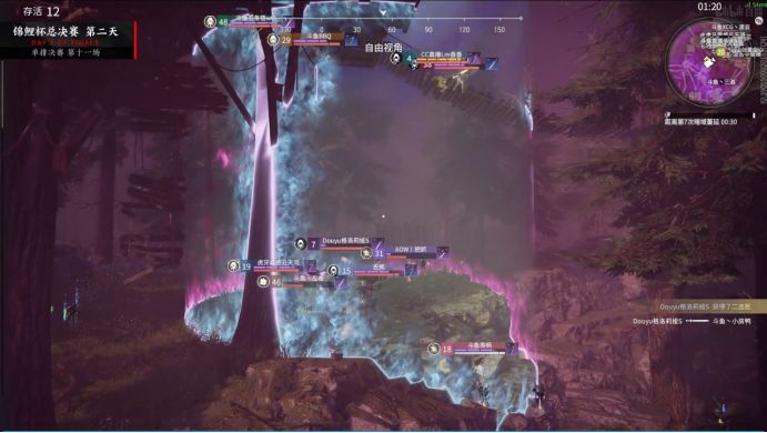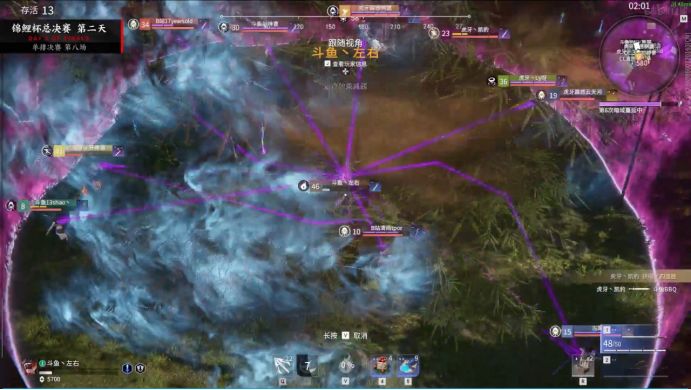 决赛圈刷新至落日寺北侧悬崖下方竹林处展开最终大战,“斗鱼丶左右”宁红叶释放赤练无明企图控制全场打开局面,但释放中惨遭集火瞬间阵亡。“B站清雨tpor”迦南连续两次完美释放巽风震雷刀造成清场效果,积分榜第一名“斗鱼13shao丶”被卷入风暴瞬间阵亡。“斗鱼战神曹”极限补甲成功剑气反杀斩获不朽荣光。