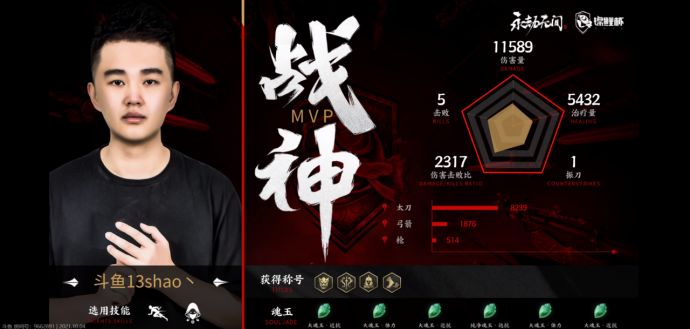 本局比赛由“斗鱼13shao丶”荣获战神殊荣,赛后采访中“斗鱼13shao丶”表示:“稳扎稳打,实力上分,这不就轻松吃鸡了嘛!”