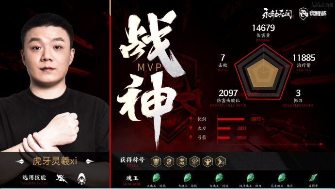 本局比赛由“虎牙灵羲xi”荣获战神殊荣,赛后采访中“虎牙灵羲xi”表示:“赛程过半心态已经很轻松,轻装上阵打出好成绩展现最好的自己。”
