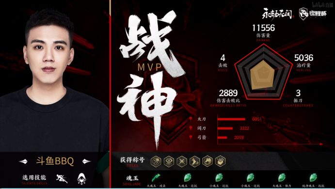 本局比赛由“斗鱼BBQ”荣获战神殊荣,赛后采访中“斗鱼BBQ”表示:“放松心态,以最好的状态展现出最强的实力。”