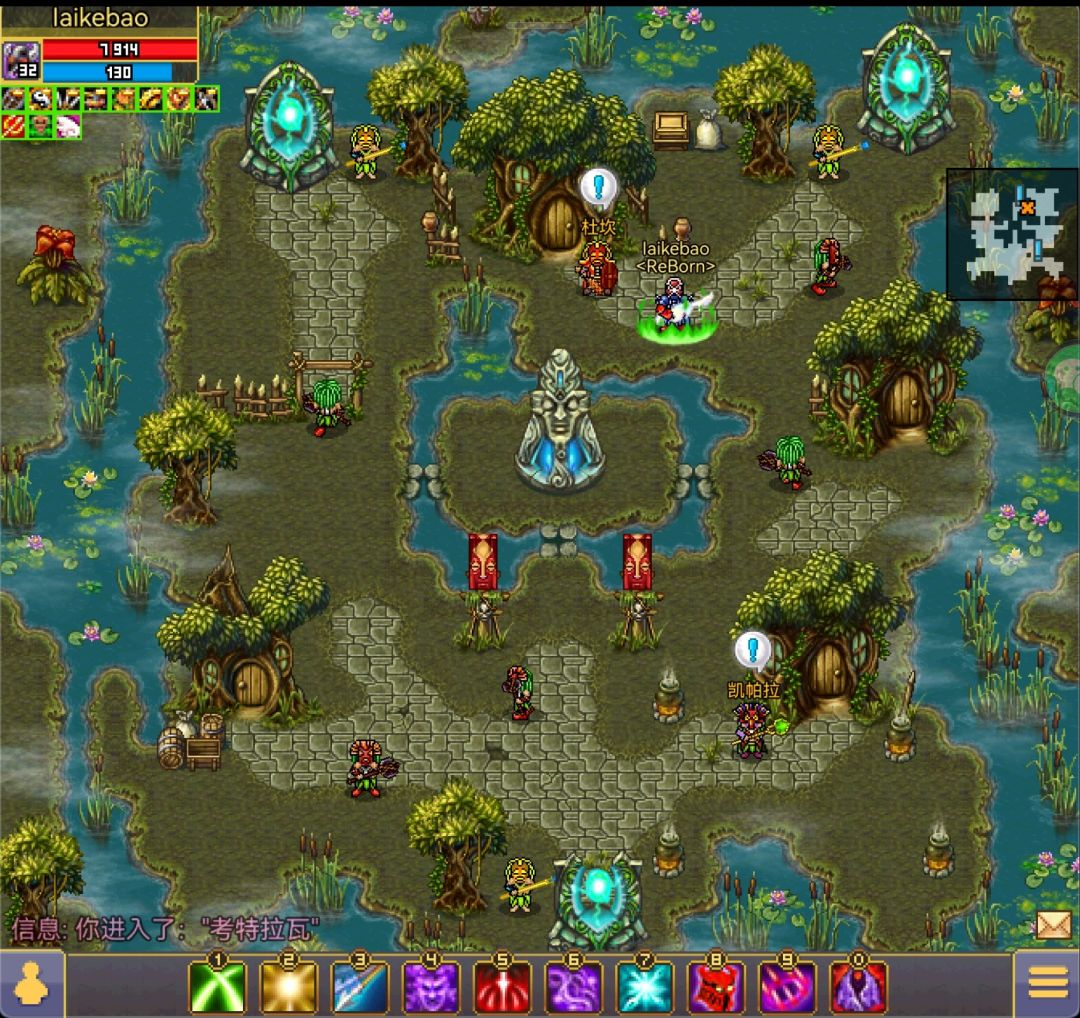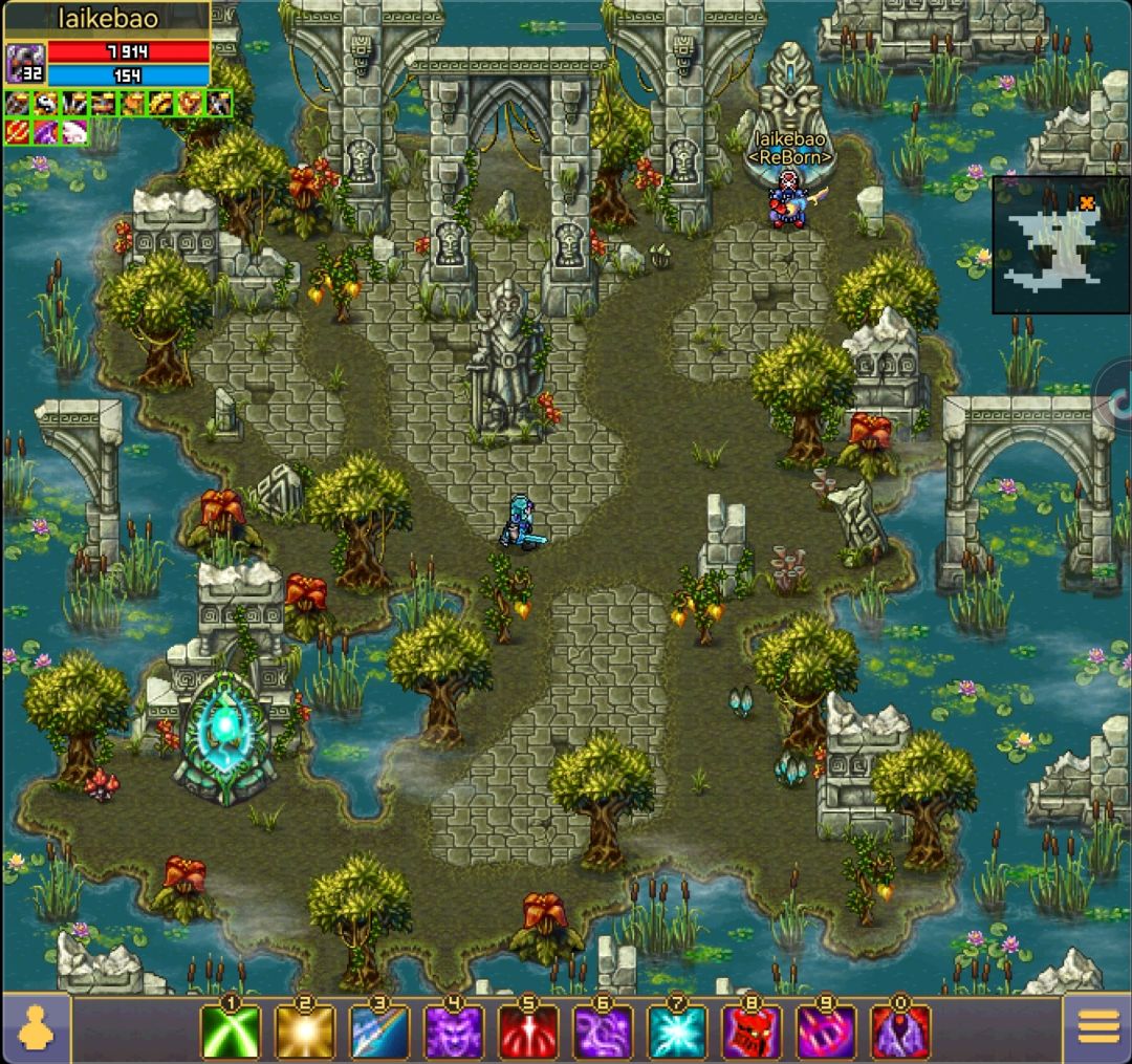 《拉瓦的力量》是需要在小沼泽找到皇冠地图提交任务。进入小沼泽需要依靠大沼泽绿柱子的随机传送,如果传送到下图就说明你顺利进入了小沼泽,这时候绿柱子只会在小沼泽随机传送,如果想回到大沼泽需要摸蓝柱子。