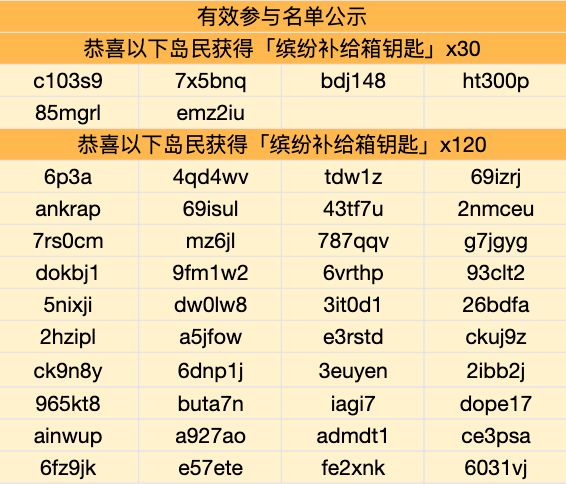 2、每个ID至多获得「缤纷补给箱钥匙」*120,重复发布不叠加计算奖励,请勿刷楼。