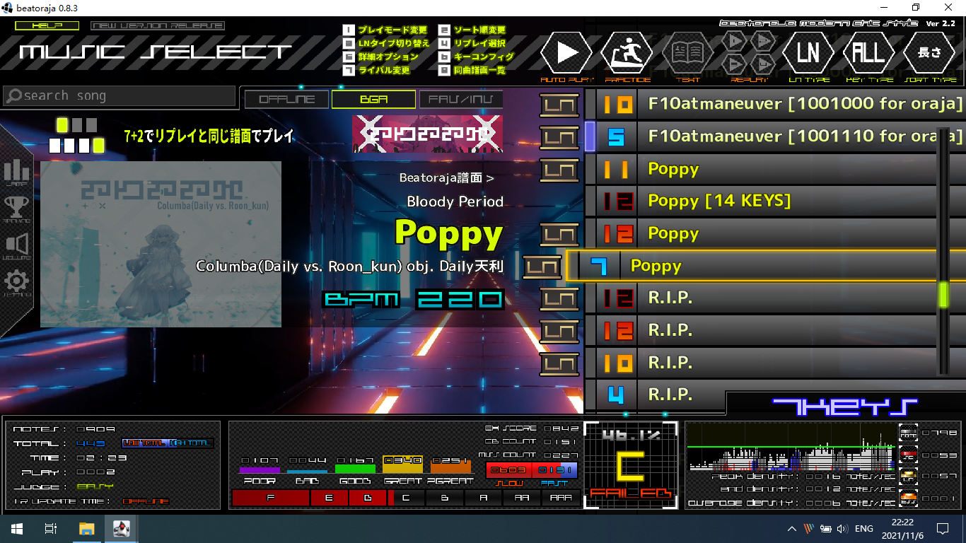 因为俺的移动设备出现了触屏不灵的问题,只好转向键盘音游。开始主力用键盘打Malody的4K。并通过hakula的LR2配置教程入坑了BMS