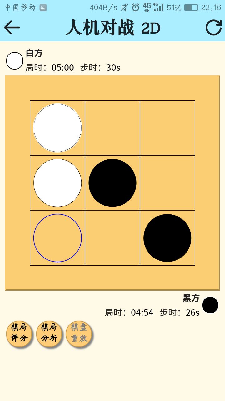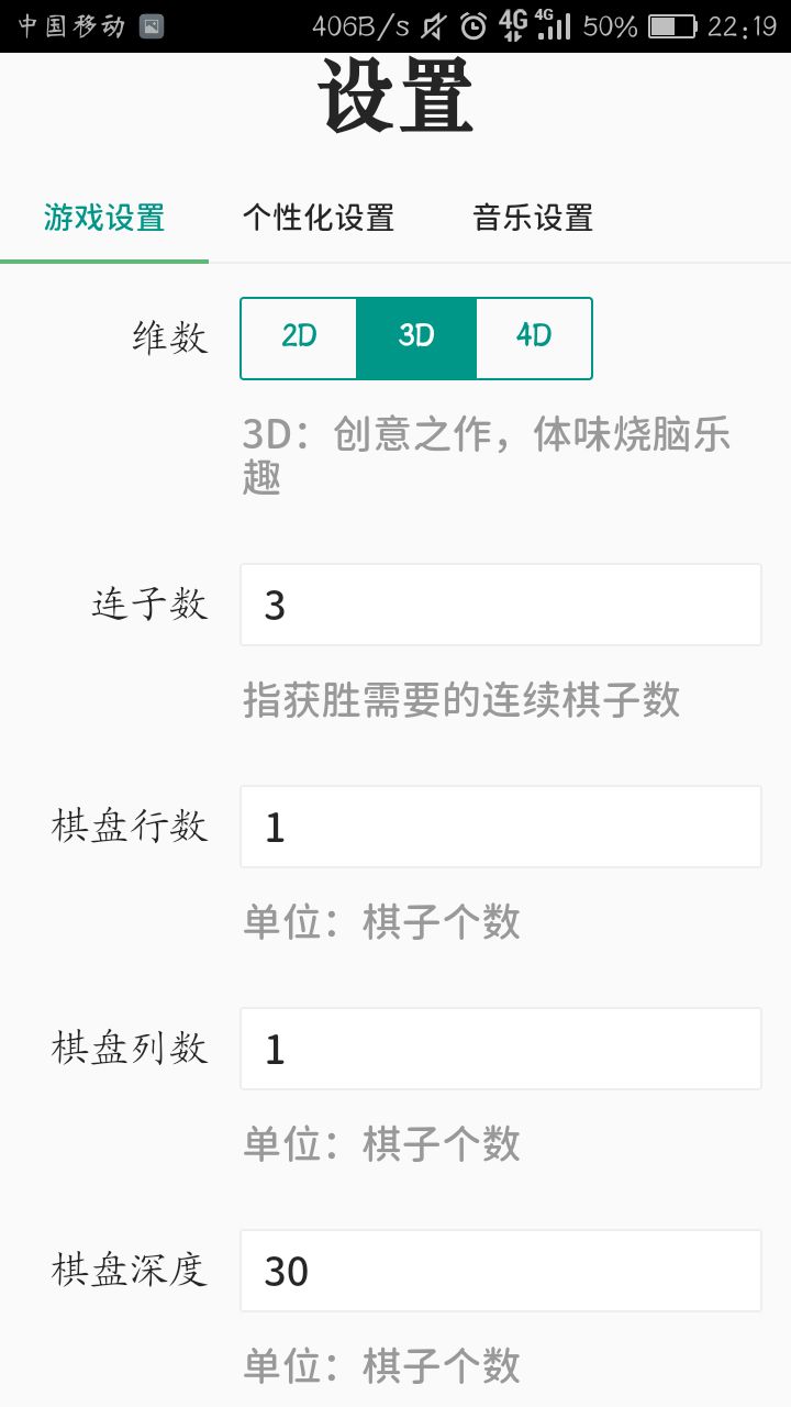 (五子棋竟然能被玩成井字棋(别问我为啥没有X,这毕竟还是五子棋啊),但设置里的下棋位置也得改成格内),可惜就是这AI不大给力(AI表示:窝是通才非是专才,俺得陪你玩M维N子棋还得适应那些乱七八糟的棋盘大小,肯定比不了那些砖门下井字棋滴AI啦)