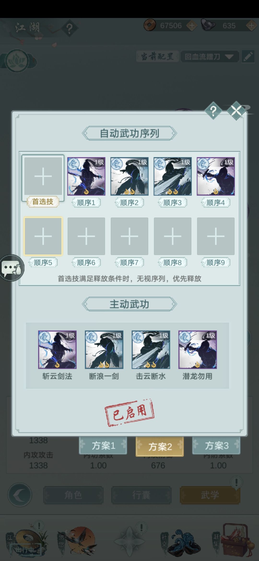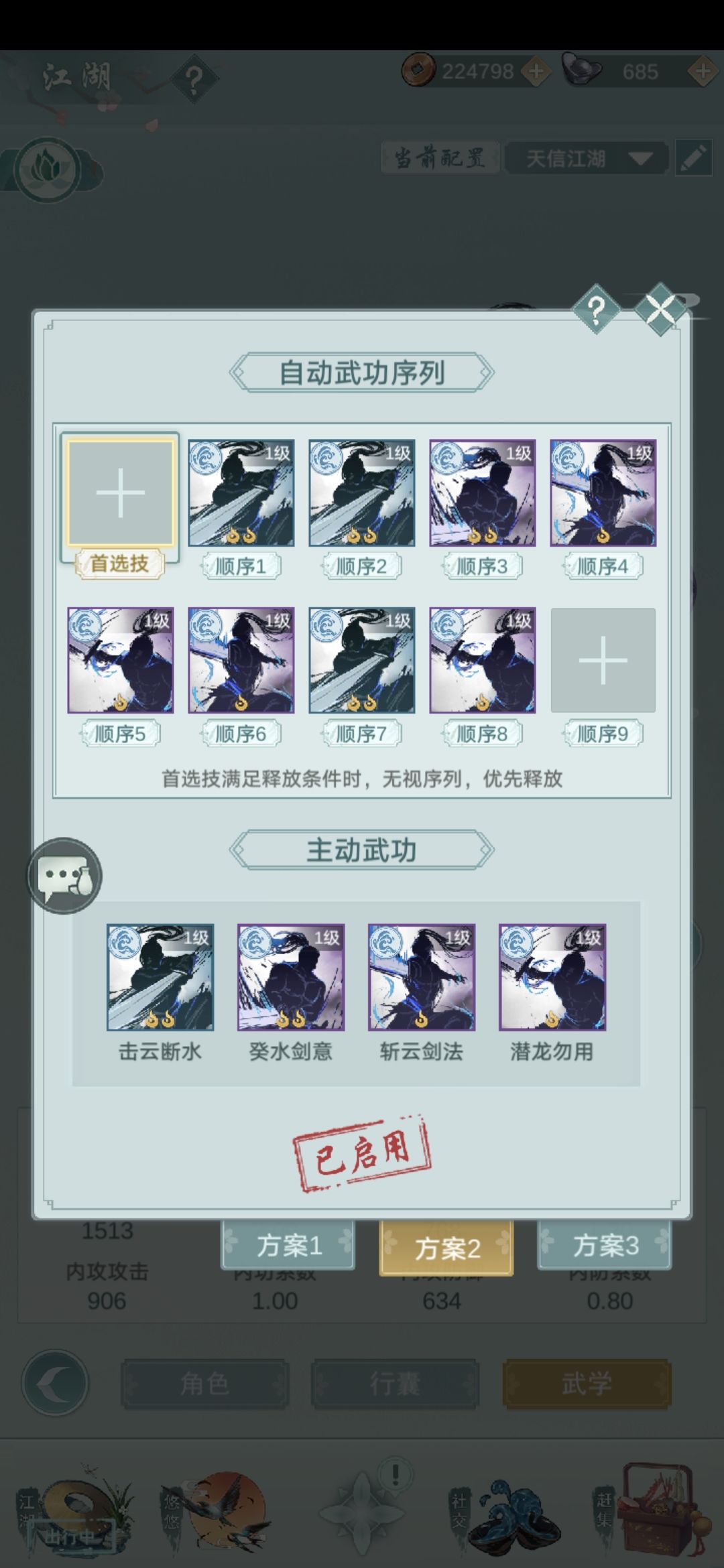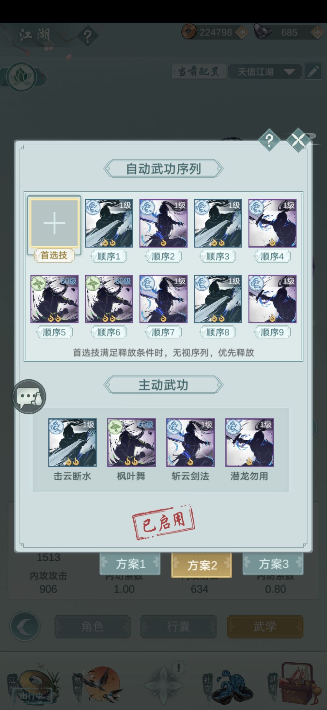 设计思路:斩云暴击叠剑伤,击云断浪叠剑势,下一击潜龙打出100%增幅伤害,(ps:萌新没有潜龙也可以用飞星连珠剑)