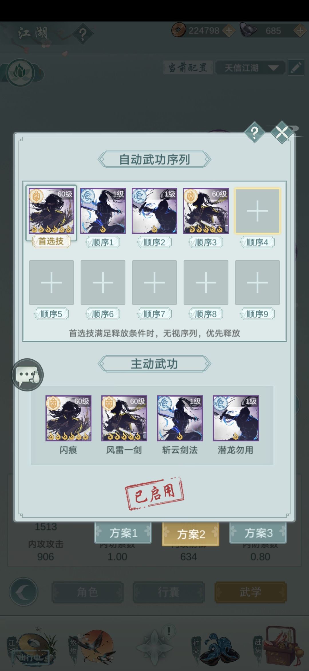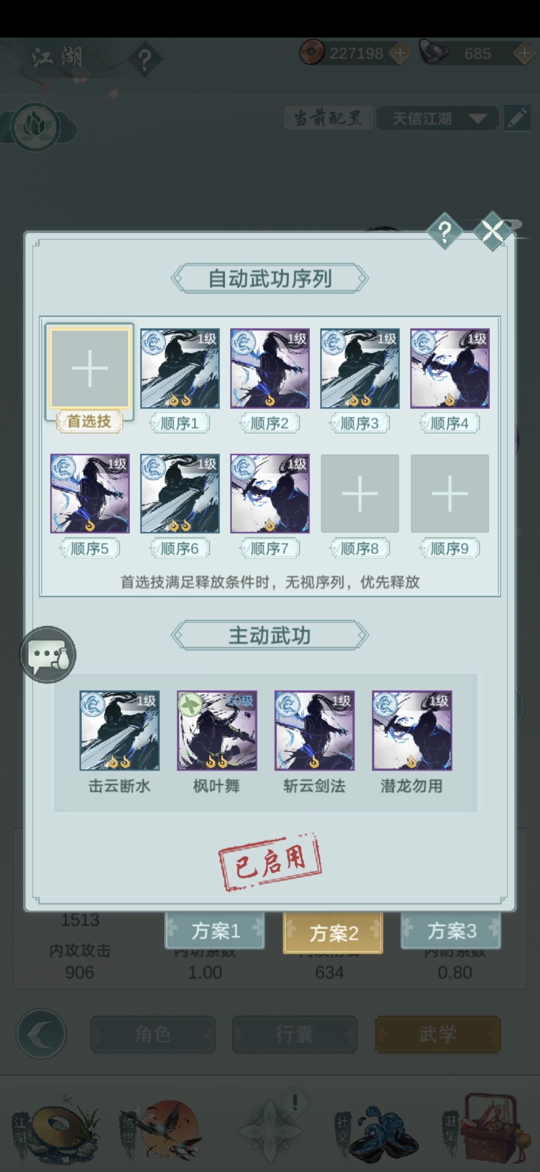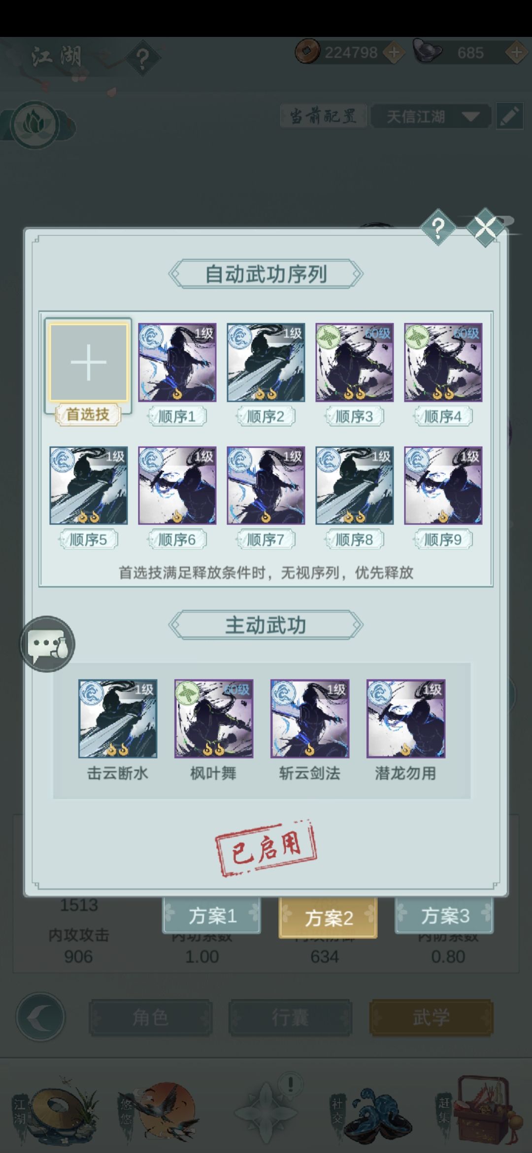设计思路:斩云暴击叠剑伤,击云断浪叠剑势,下一击潜龙打出100%增幅伤害,(ps:萌新没有潜龙也可以用飞星连珠剑)