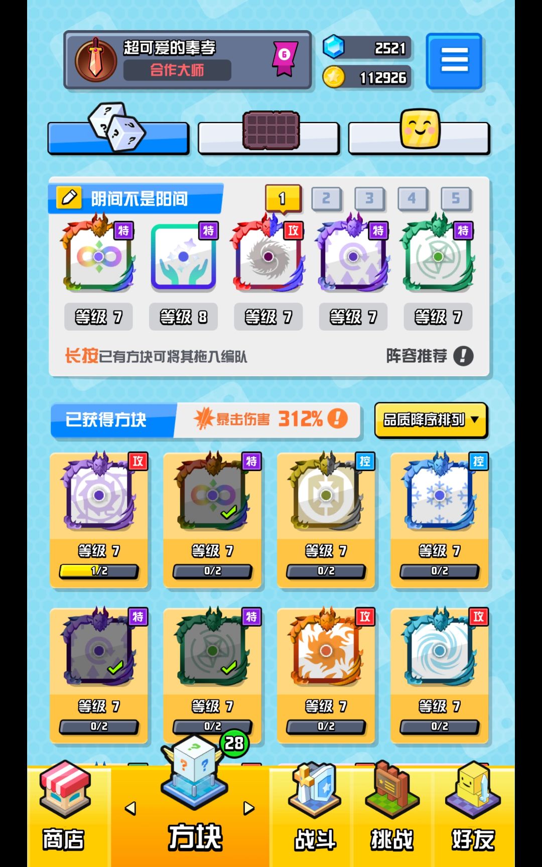 ⑤等你觉得自己阵容稳定了可以开始考虑升暴击了,阵容不行继续按照①②操作。