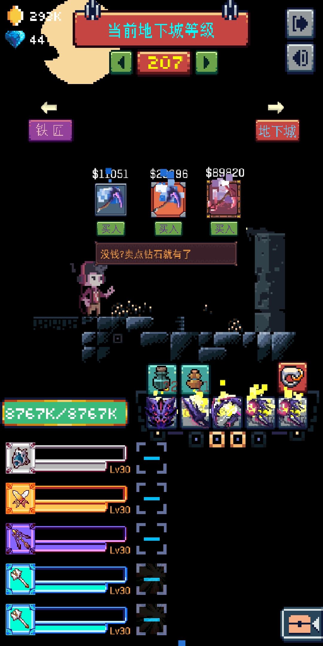 170层以后把其中一个双剑换成圣盾,因为敌人输出压力变高了,圣盾血量被动点满其他随意
