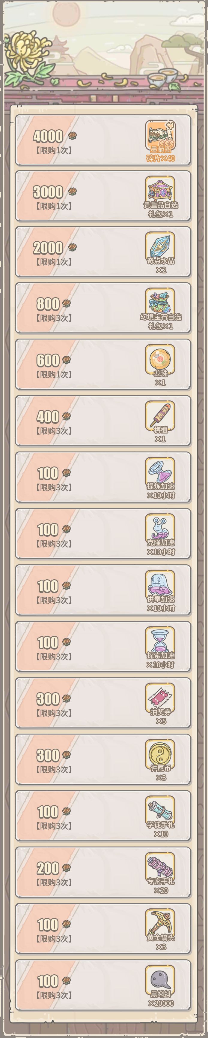 1、活动期间,可以消耗活动货币“秋菊”在活动商店中购买奖励