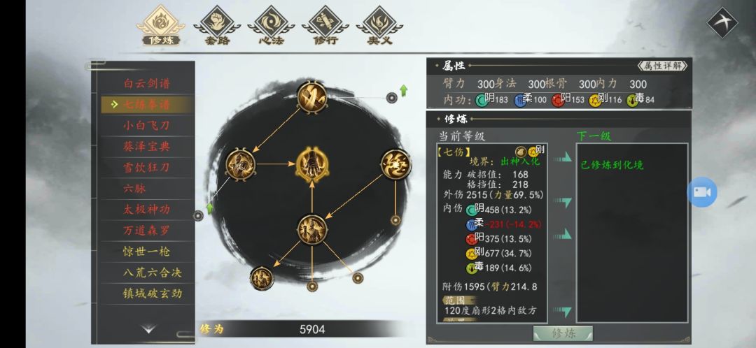 这个内伤值与我们人物自身的五系值直接挂钩。而且也如我之前所说,内功属性越高越好,即使有相克属性的存在,因为其他系别加成依旧是非常高额的,所以我们应该追求全属性最高值。除非你一开始已经固定只用阳系或者阴系,你可以只选择自己对应属性的内功和招式,以此来提高内伤值最大化。