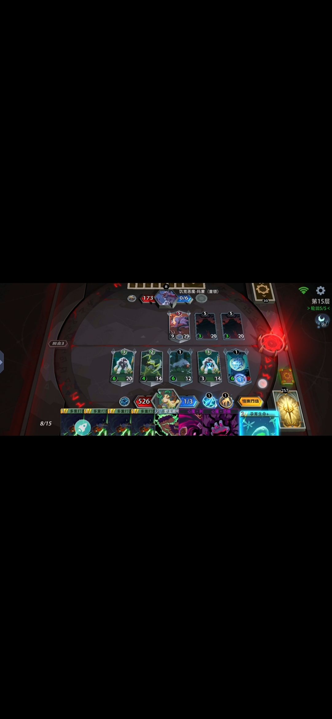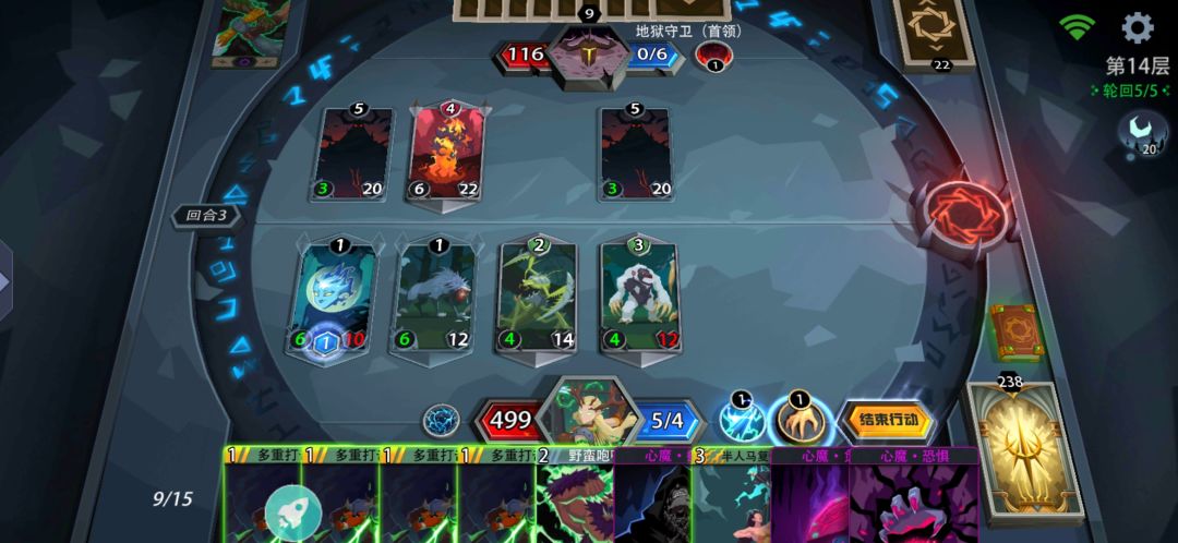 由于最后boos第3回合要用回手所以我就多用一张生物卡吃下去!不然都是第3回合就开技能秒的