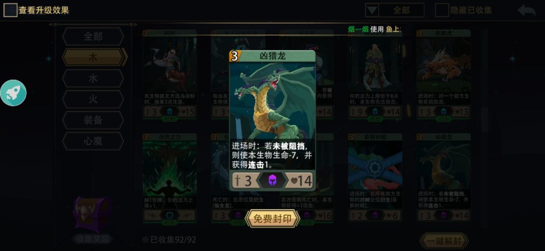 1凶猎龙-是比蒙幼崽的替代品也是连击的排面除了血少,上场就怕对面来张火球术就没了!凶猎龙是在还没终极成型最好的打手,在还没有多重打击中可以配合螳螂怒袭快速清场这一点比(比蒙幼崽)好