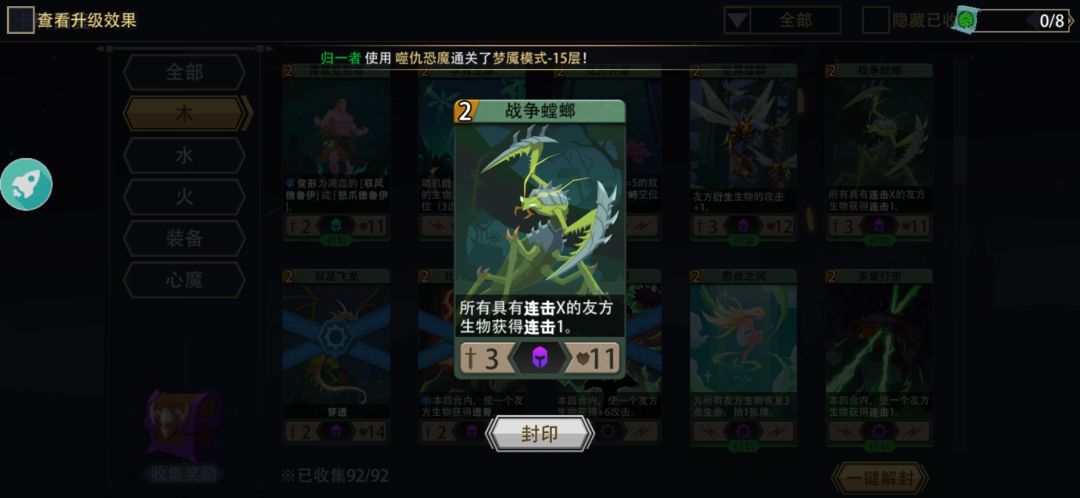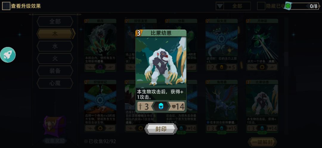 这套阵容适合梦魇通关,需要固定6张卡牌1比蒙幼崽-4多重打击-1能量法球。