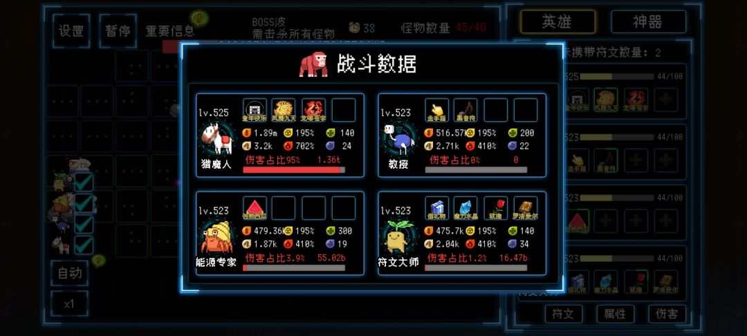 现在攻速流厉害了,一把打太久了,中途睡着了,一醒来十多个蛋没有用,导致后面属性不够了 玩法:先拿符文大师的装备,之后转符文大师,其他的转职顺序无所谓。 之后就是所有人的技能不会断。 神器普攻伤害,暴击率最重要。