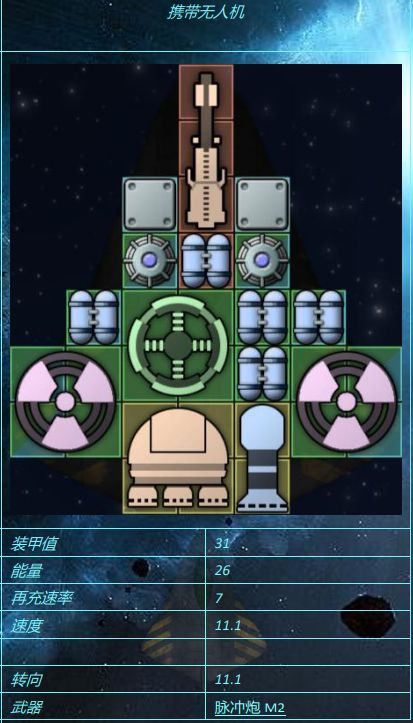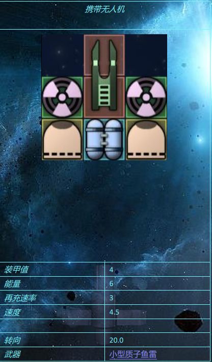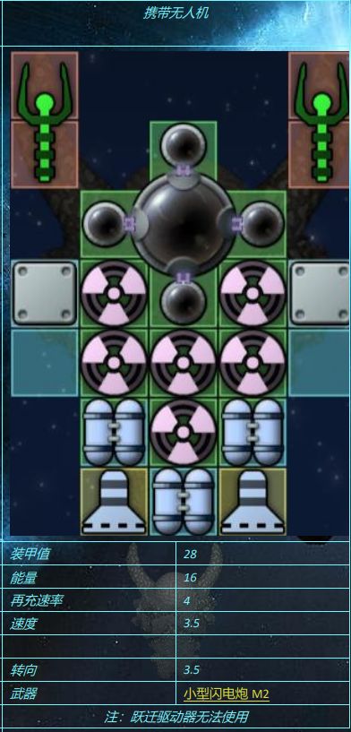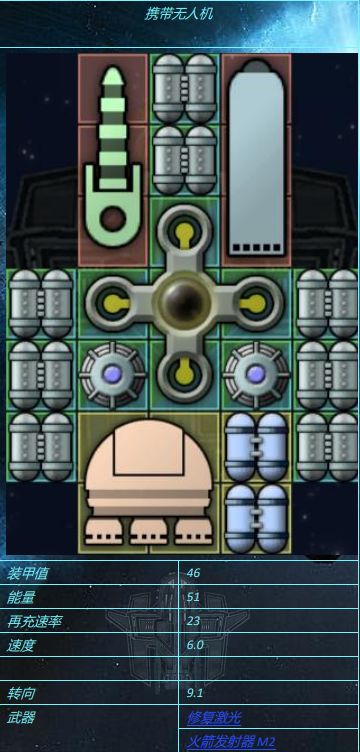 有的无人机甚至连装甲都没有(M81),有的无人机却厚得和反应甲一样(S1),但是对于一般无人机而言,钛装甲还是太重了,无人机装甲更轻,但装甲值更低,更适合无人机使用三,引擎