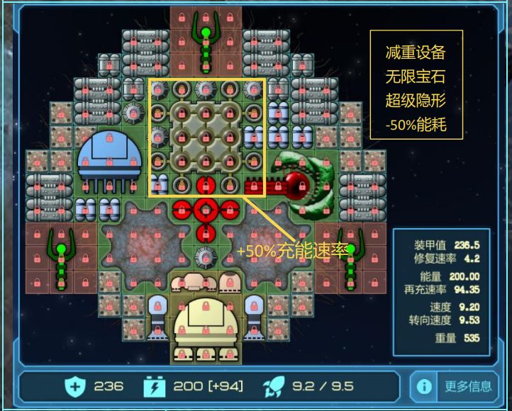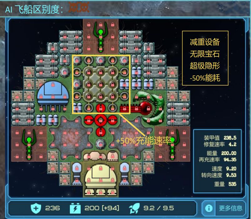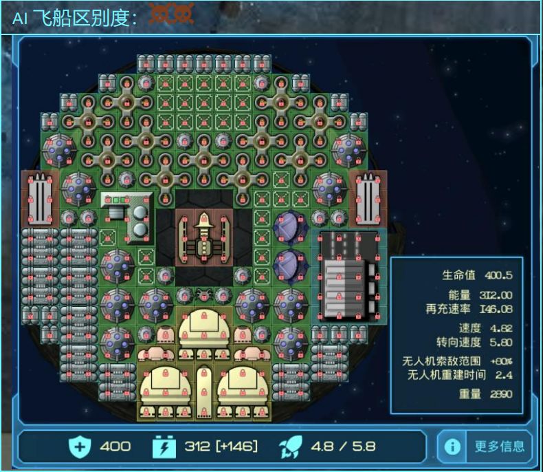 比玩家更正常的格子分布,射程远,能耗高,虽然伤害比玩家的低,但是CD更短,相比之下DPS更高
