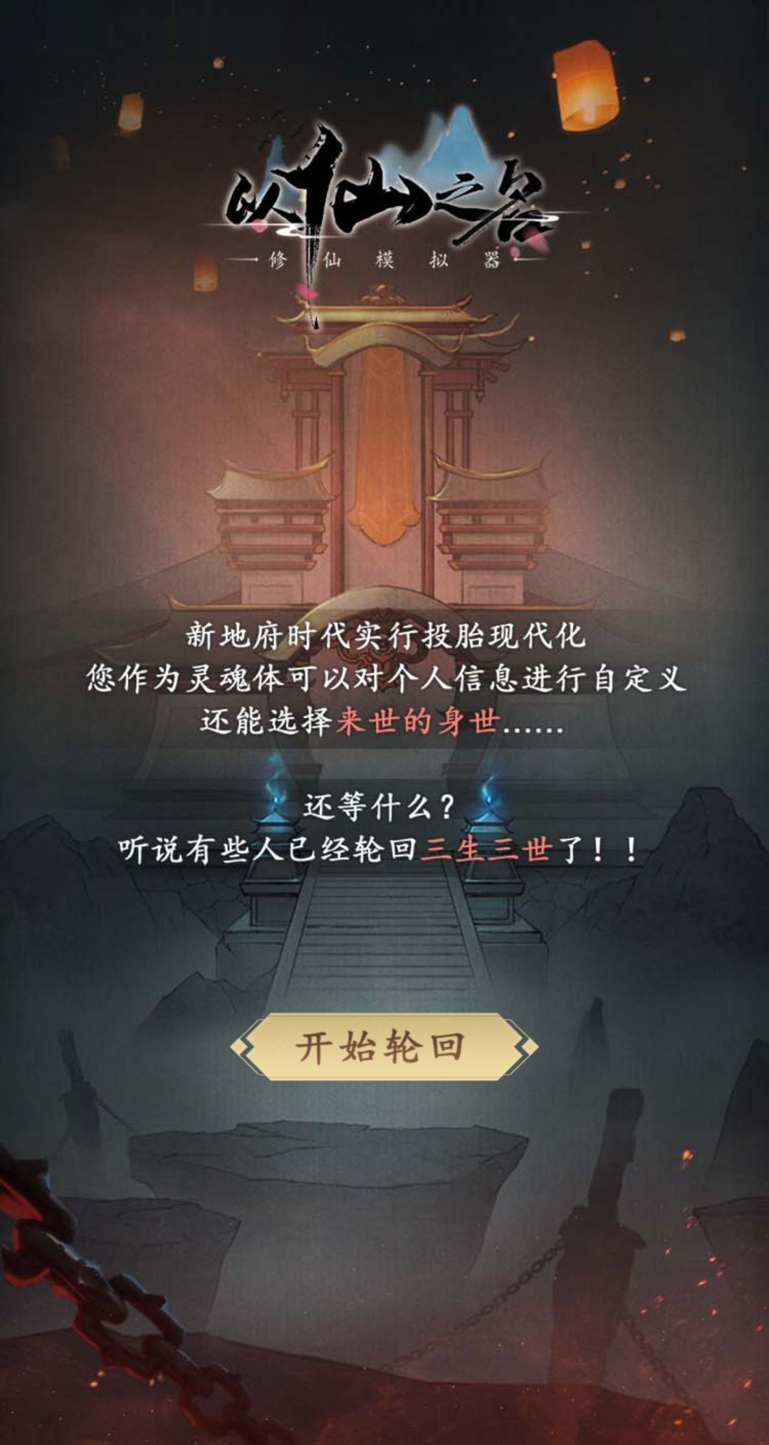 在大家正式踏上历练之路前,掌门特地吩咐玲珑为道友们准备了一份飞升秘籍,名曰:“修仙模拟器”。据说不论自身资质几何,只需要简单的几步操作便可一睹来世的身世。你能到达什么境界?又能习得何种绝世仙术?这份秘籍将为你揭晓谜底……