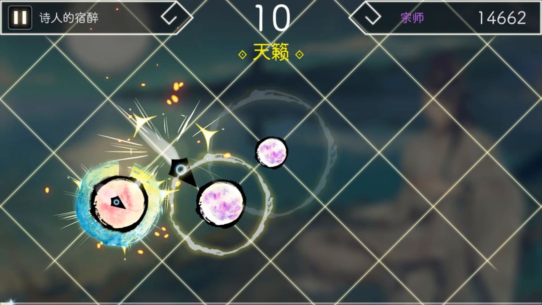 这首歌的宗师谱面,可以说是操作很全面:单击、双击、连击、长压、滑动、拖曳,样样都不少,全方位的考验音游人的自信。「酒、醉」两字贯穿全曲,再以共通的「愁」字表达出酒醉后的朦胧情感,因此取名为「诗人的宿醉」,彷佛诗人离不开酒,更离不开愁。