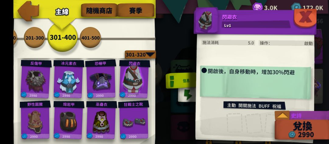 衣服:✨S14更新 200-300狂暴護甲 300可換閃避衣(白的即可)400可換領主護甲(電元素增傷)