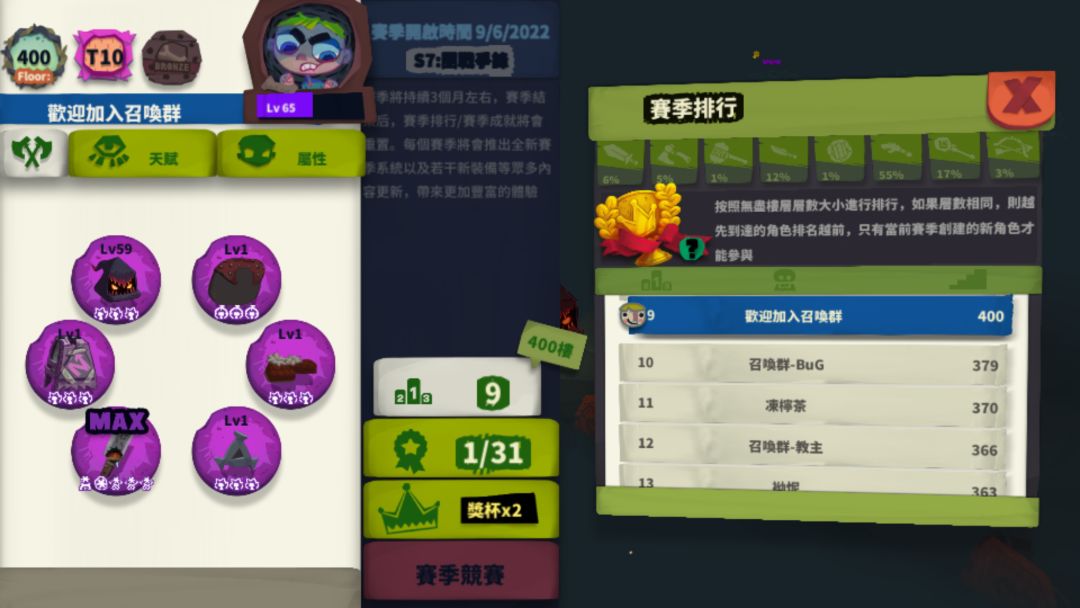400王,刀锋过关。元素刀穿透80,物刀專精五,閃避天賦全給攻速、移速。