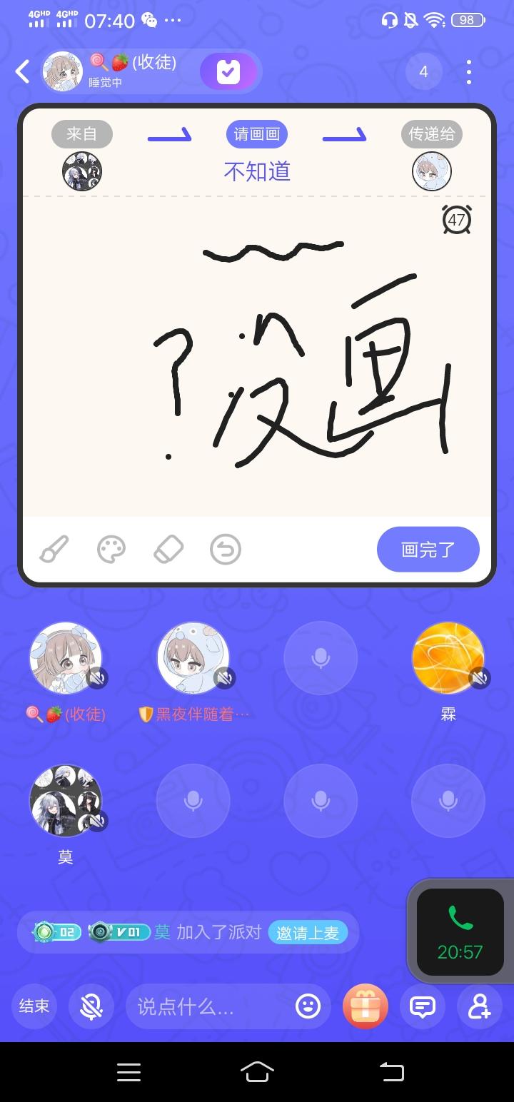 也跟竟猜版差不多只不过是接龙版会很搞笑因为別人会看不懂你画的会写一个跟我们选的答案会不一样,玩了一局下来,都没有接龙成动的。