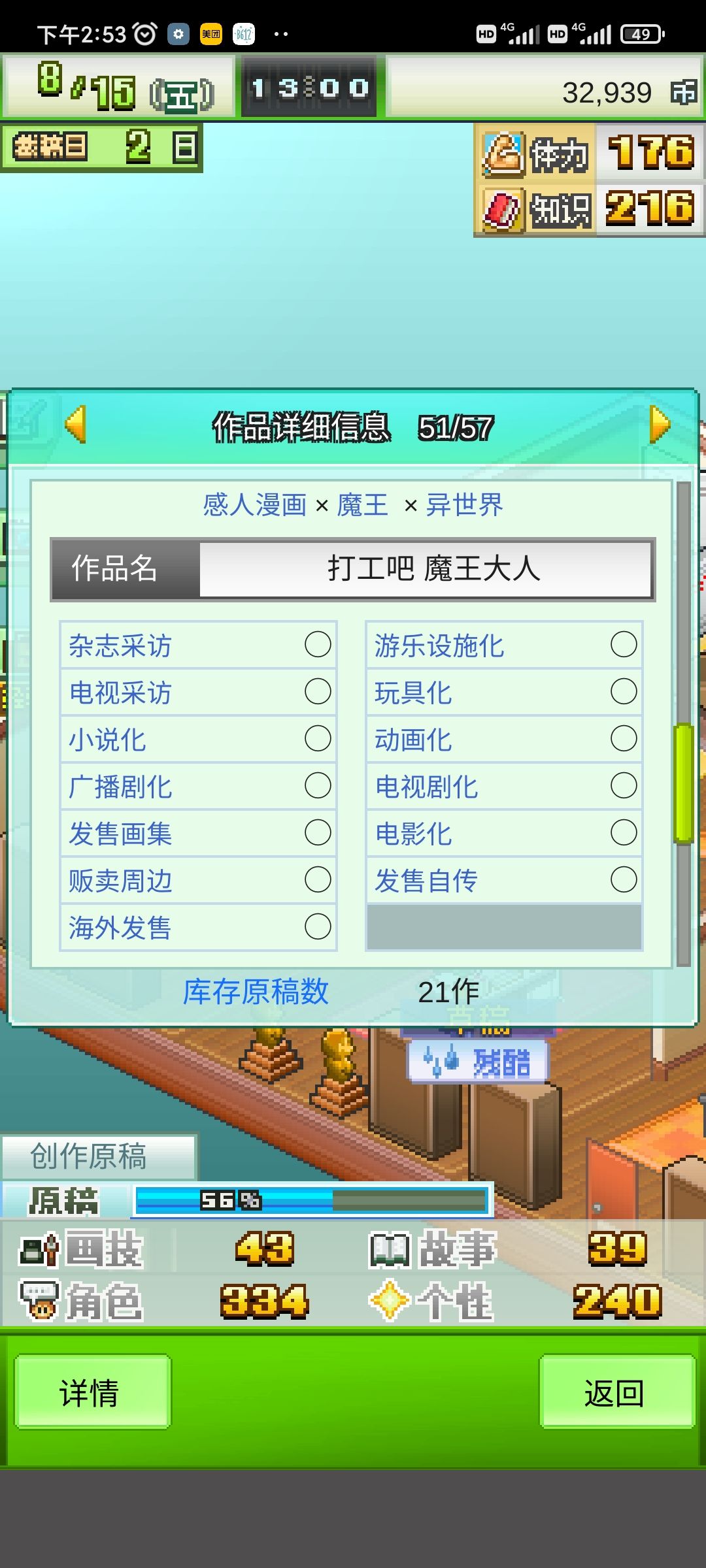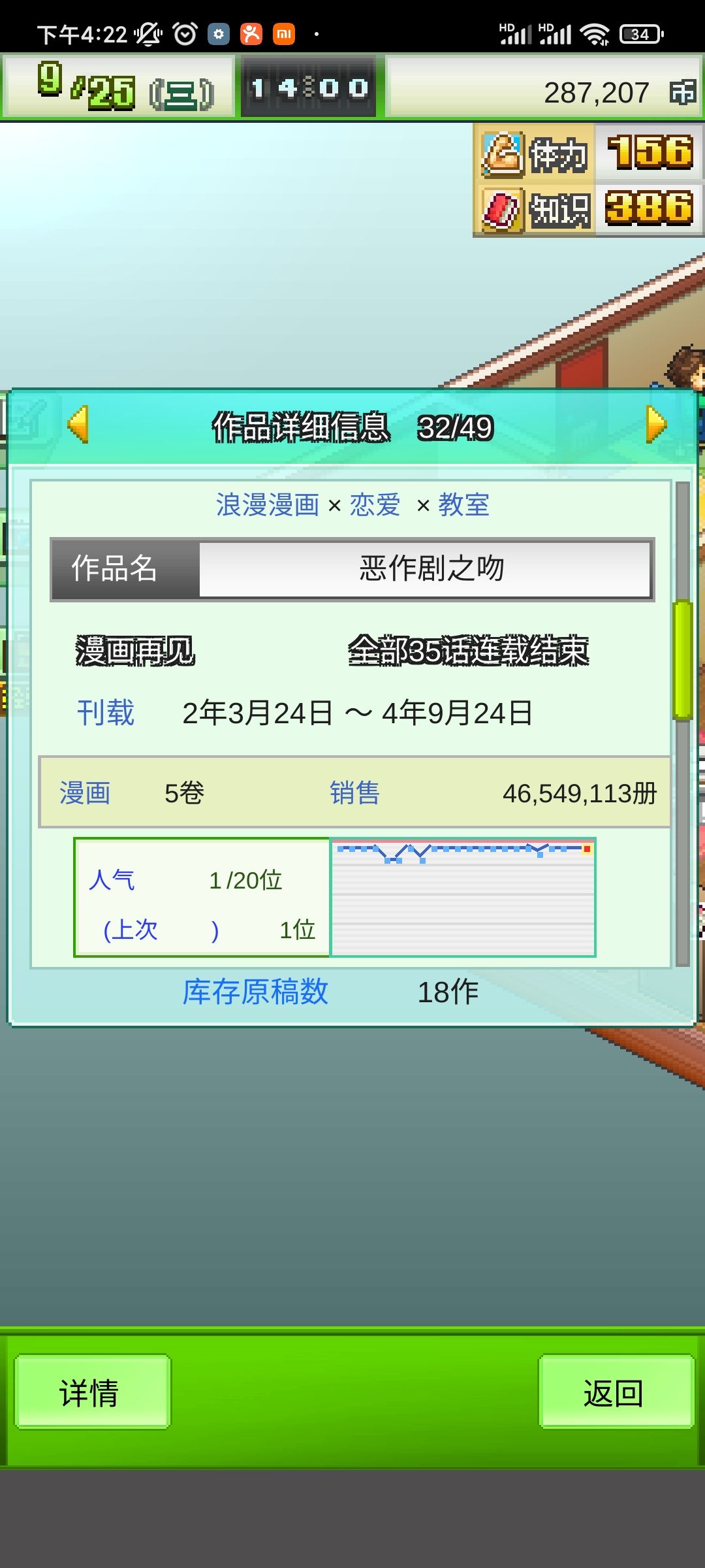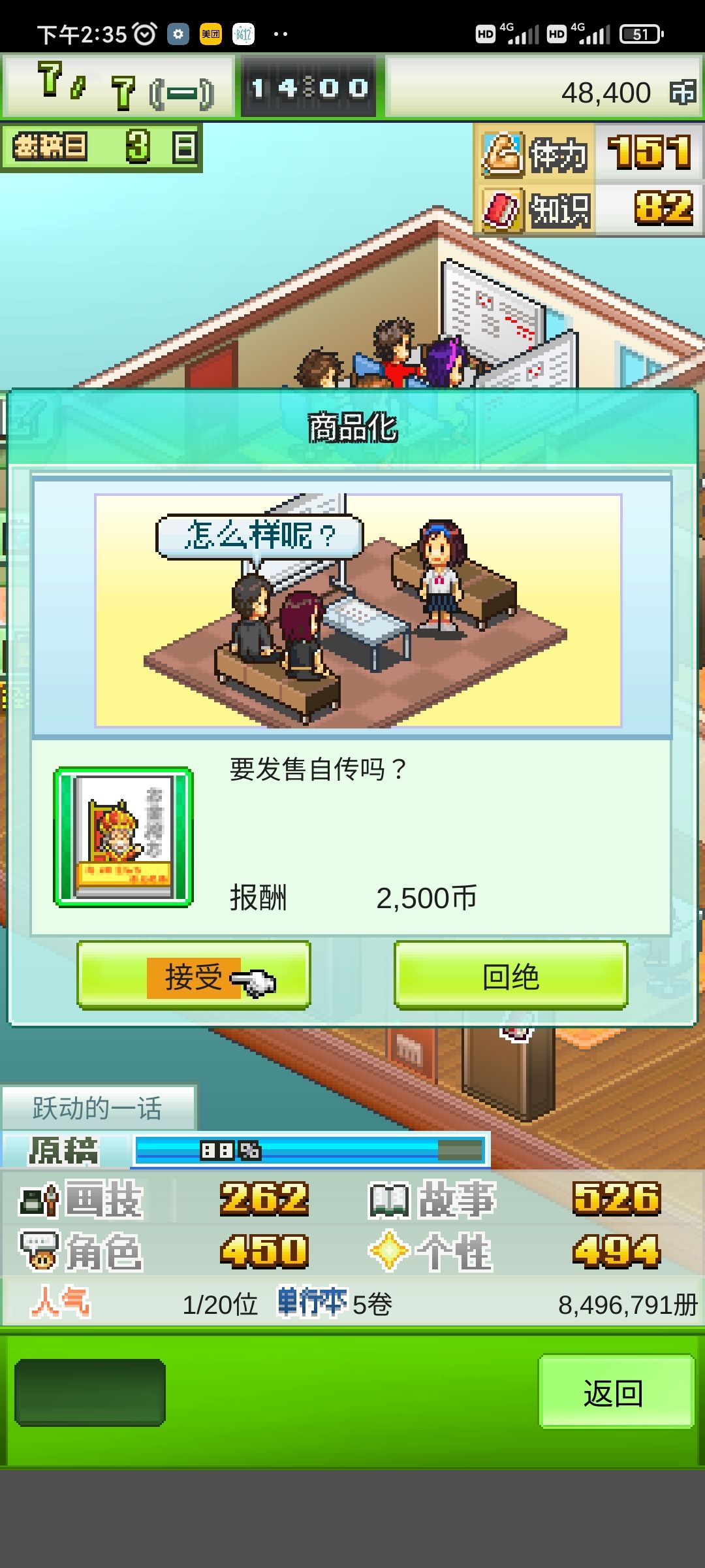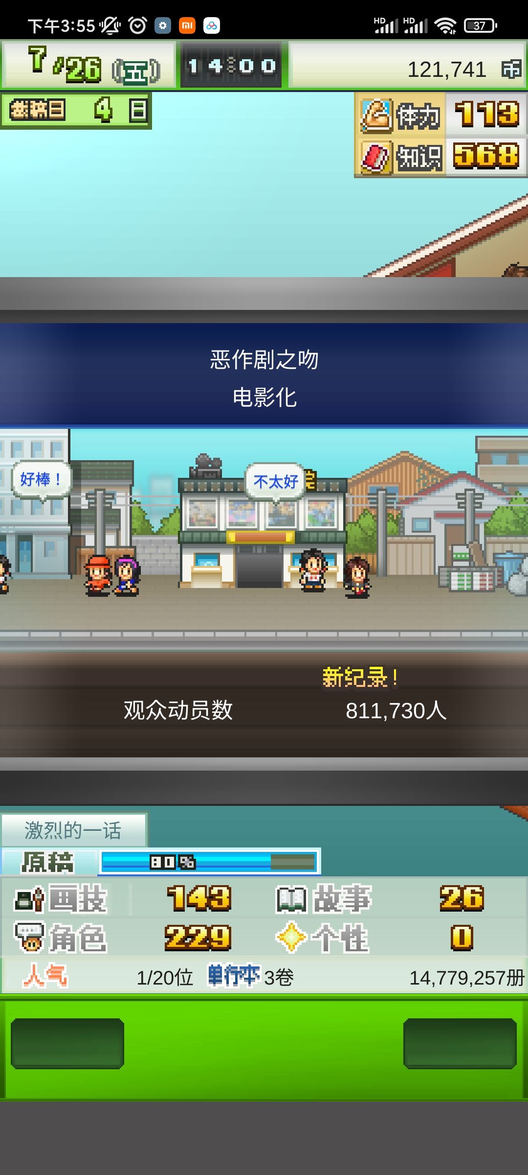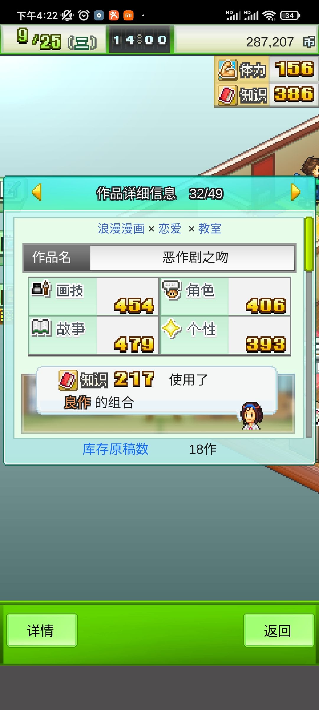 这个其实是卡了一些bug,其实是3年的时候,可以看到一些属性,也不是特别高,但是已经可以在第五个漫画社里面混得如鱼得水了,可能是少女漫比较简单吧