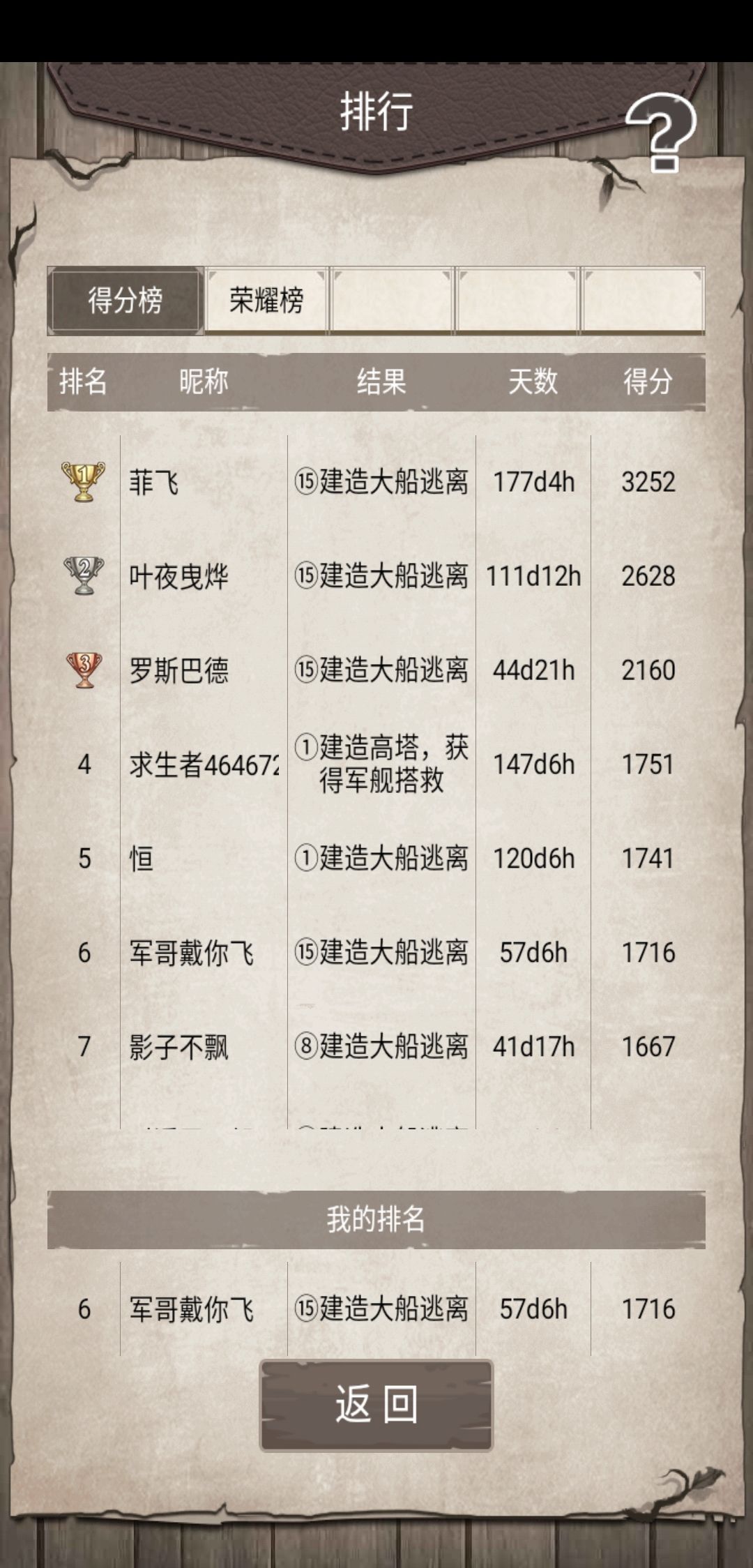 中间断断续续兽群偷走了无数的木材淡水和肉汤,崩溃,每次被偷都要推迟好几天才能逃生。