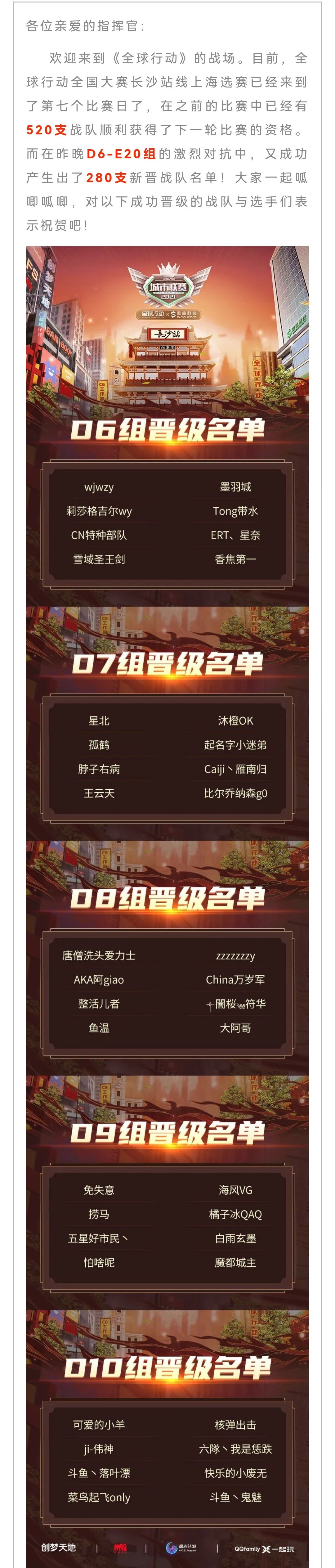 全球行动全国大赛长沙站D6-E20组晋级名单公布!