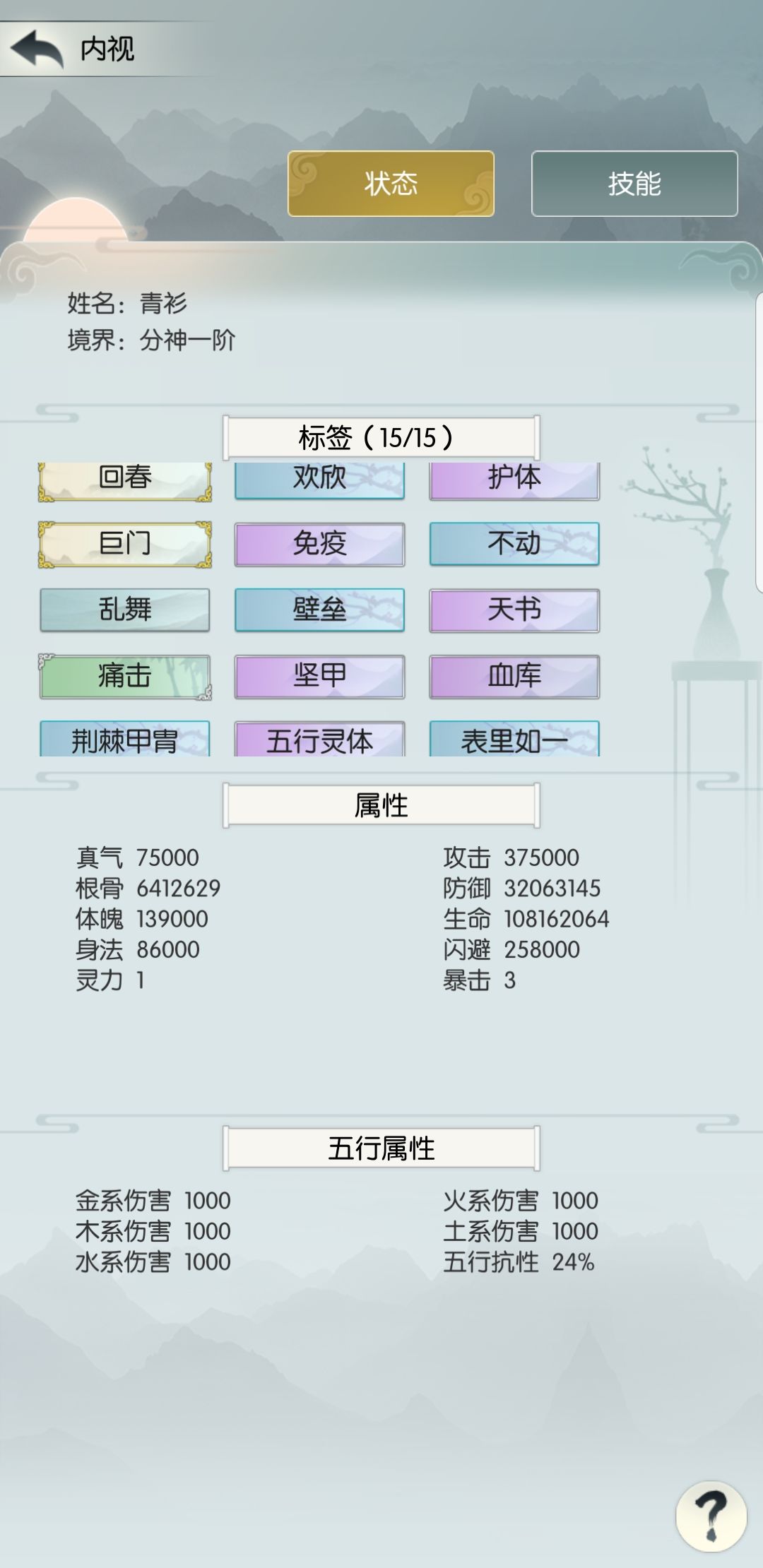 招式:到地之后就可以开第二技能,带上大梦和一个根骨招式,在买完巨门之后,进入宇之前买五行五灵和五行乾坤(五阶技能),巨门买完,就开始吃五行丹。