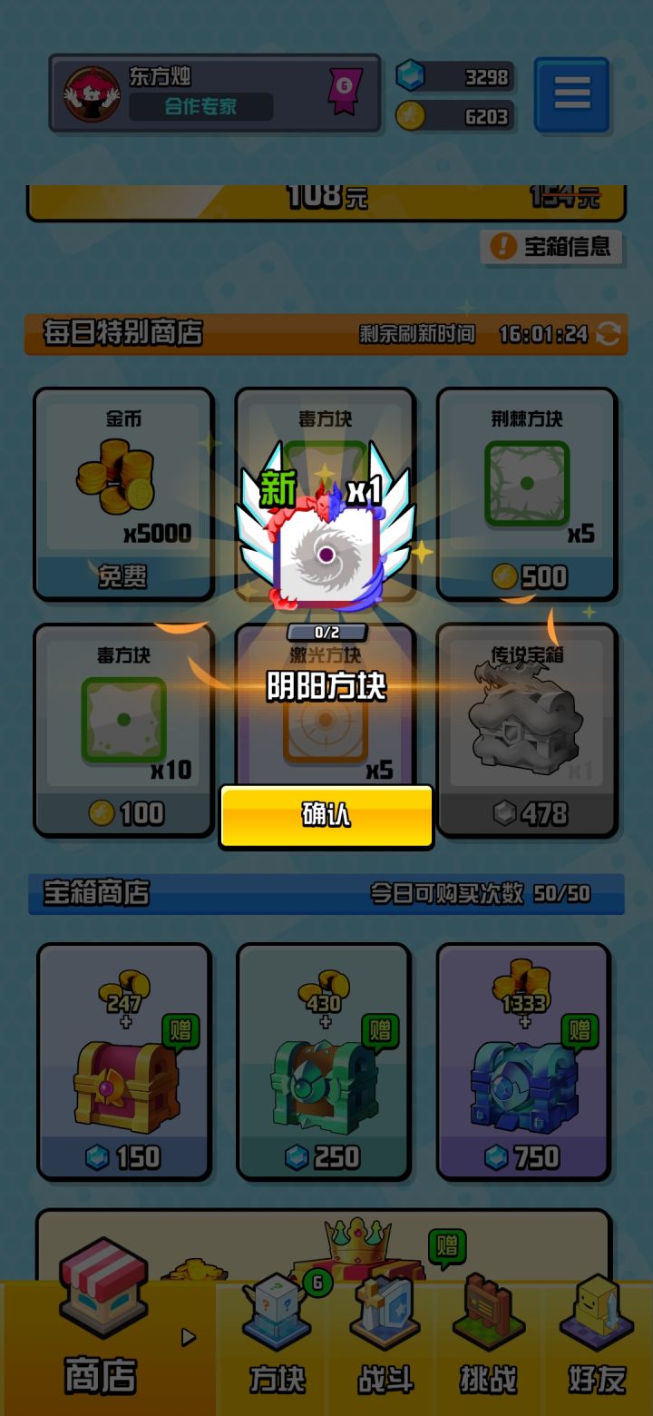 今天出了一个传说宝箱,弄了一个阴阳方块,但不知道该怎么用,可恶。