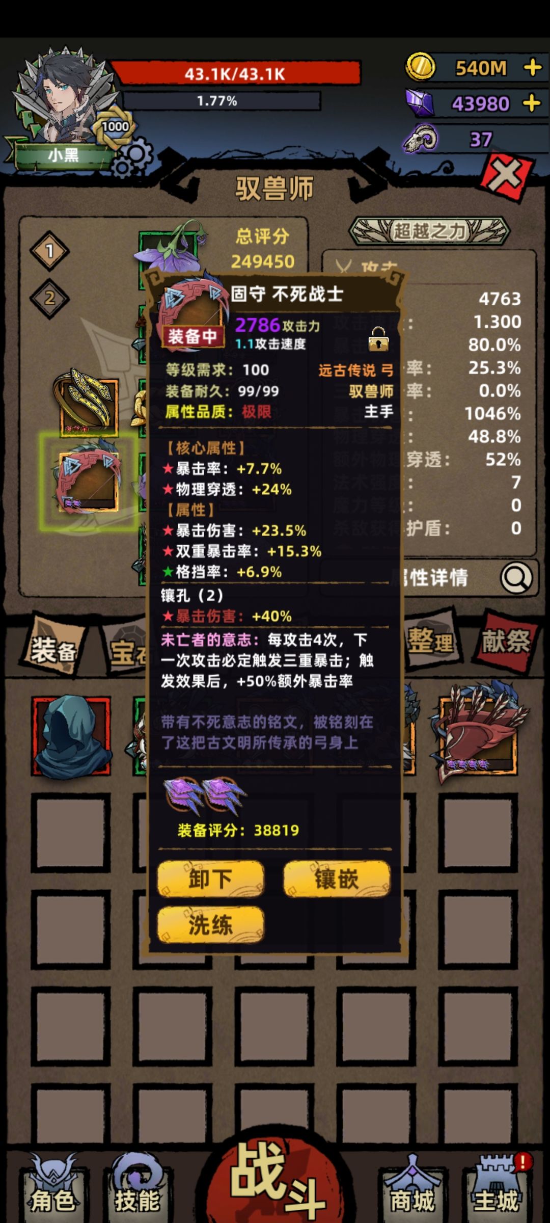 首先是武器,不死和魔齿,神秘的极限弓必买,可惜运气不好,只能刷出2孔的,将就用了。