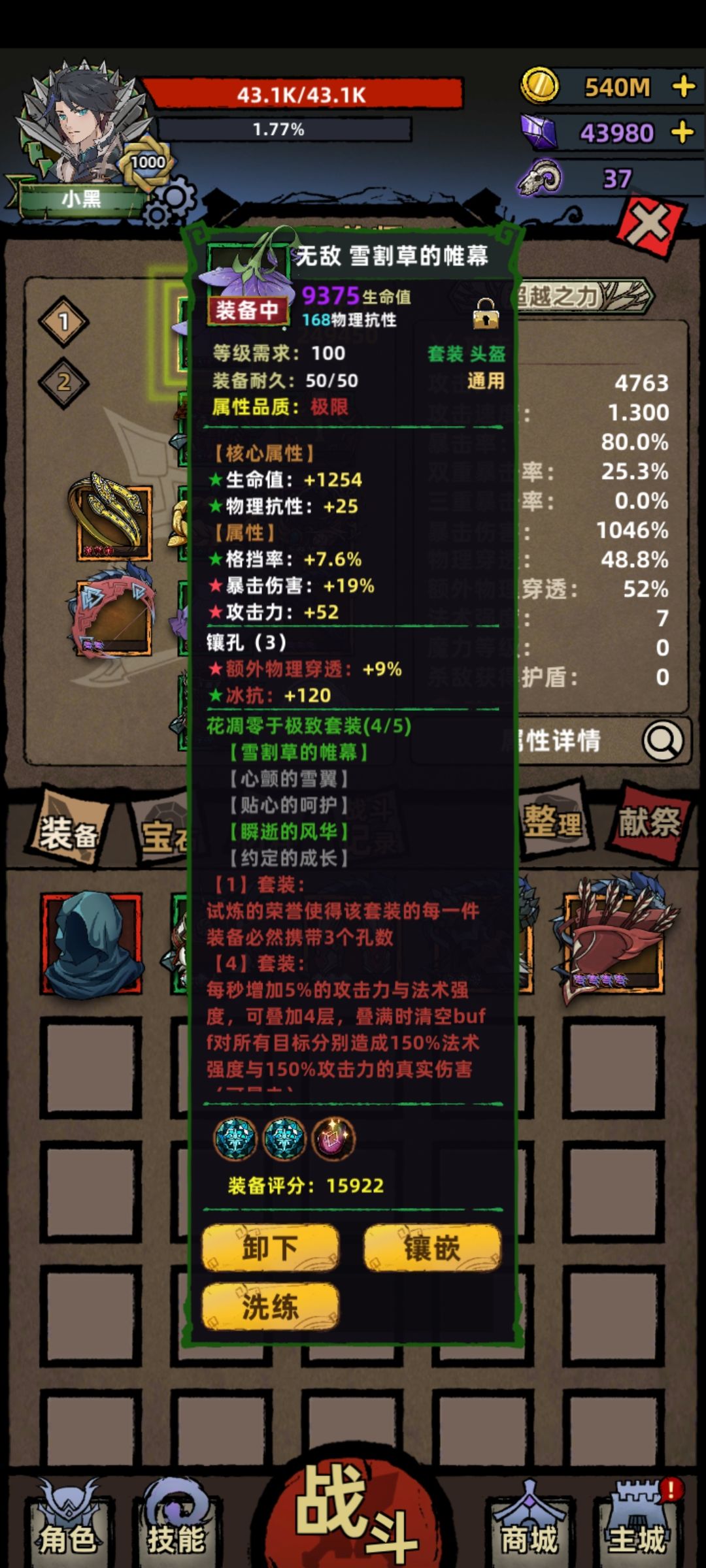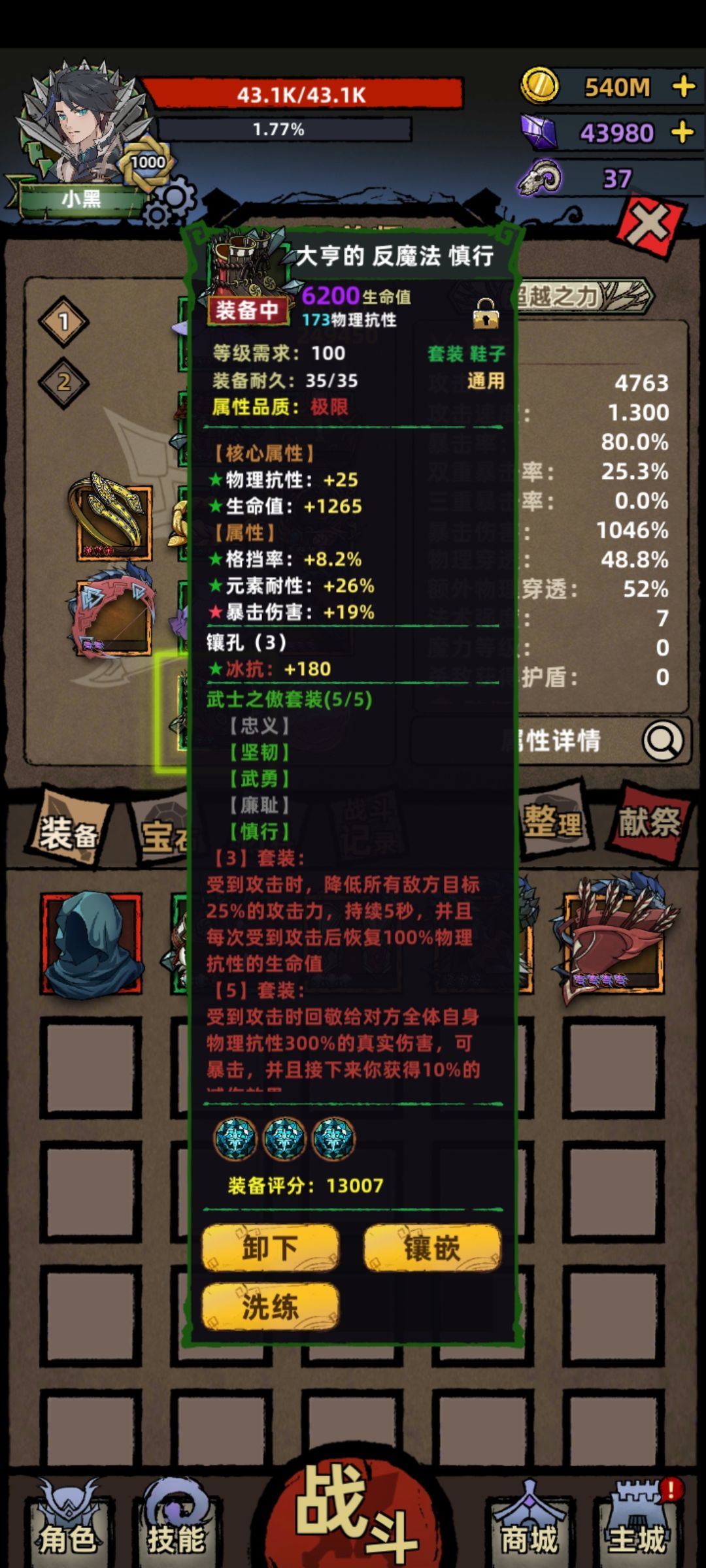 还有两件装备,是新的试炼套装,3件套装效果,吃暴击的aoe,配合王妃魔齿,3700以下嘎嘎乱杀。