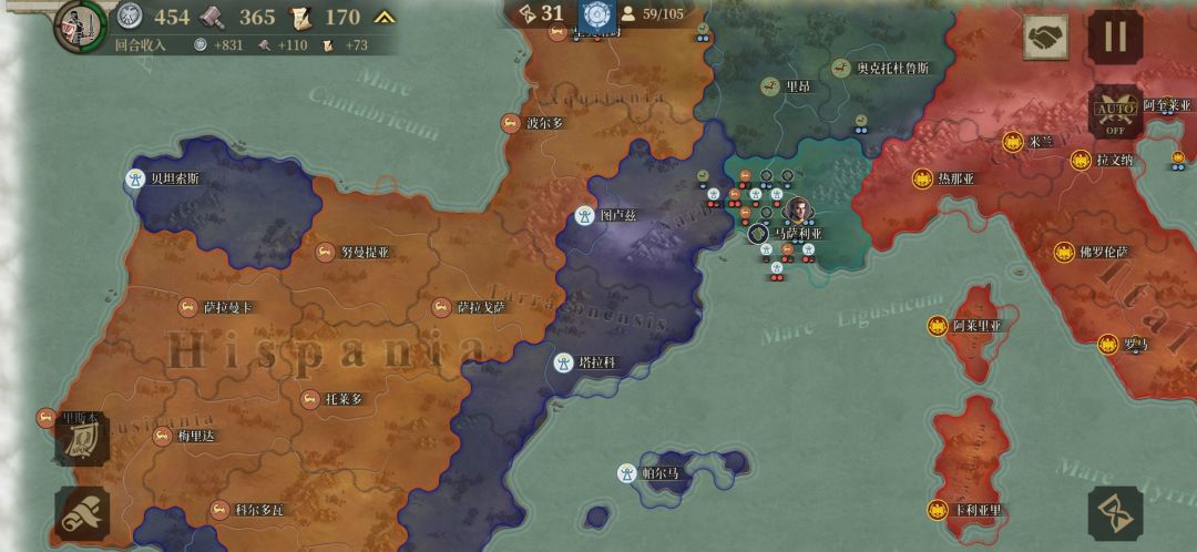 首先第一次玩马萨利亚,正常升级出兵,防御西边的迦太基和图尔德泰尼军队,本来以为罗马帝国能c起来,结果被迦太基压着打,不到三十回合被干穿罗马,最后我作为罗马阵营最后一城绝望地淹没在迦太基人民战争的汪洋大海里,我tm直接暴怒了,罗马帝国,让我教教你怎么打仗😡😡😡