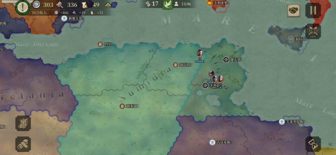 北非扩大优势,占领新迦太基,这时候迦太基已经基本没有什么战力了,最大敌人是图尔德泰尼