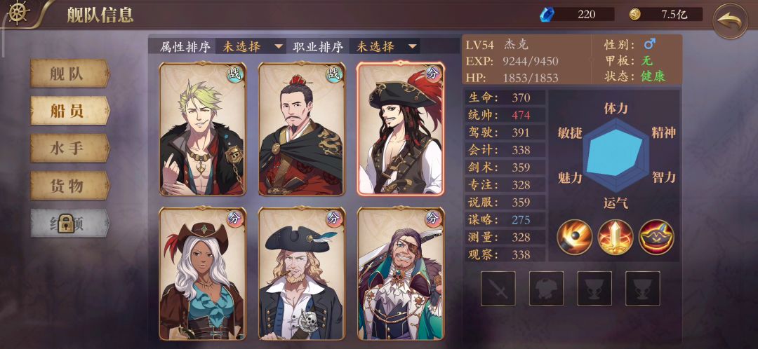 各船长都过50级再给他们穿装备: