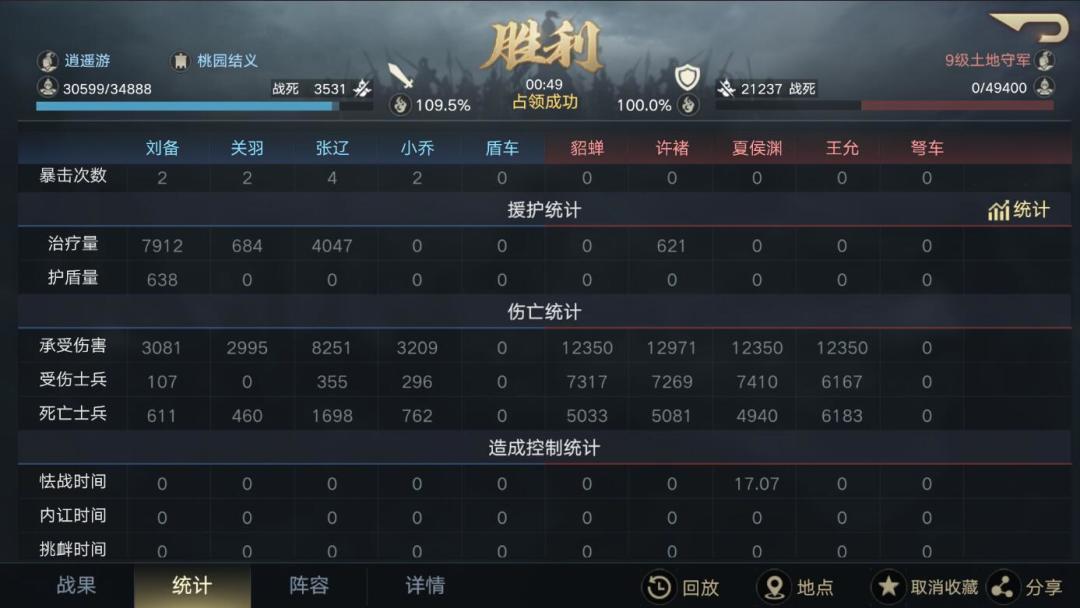 结果是我感觉输出还是有点不够,张辽抗线有时候损失也会比较大,毕竟看几率