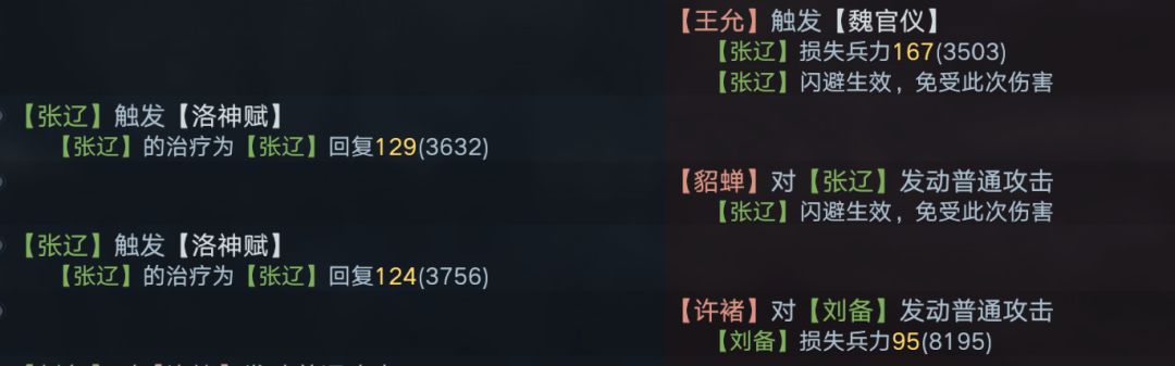 王允攻击了一次,被闪避了,相当于浪费了一次攻击机会,张辽恢复了223 (那个52不算,是曹操赋予的)