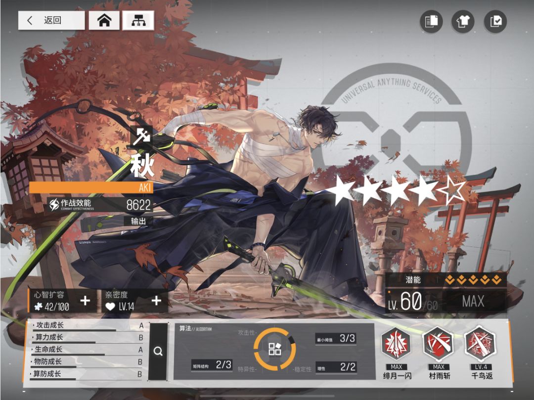 缺点:1.脆,即使是战士队的老大哥秋也可能会突然暴毙,遇到高难关的时候需要多注意站位和控制时间