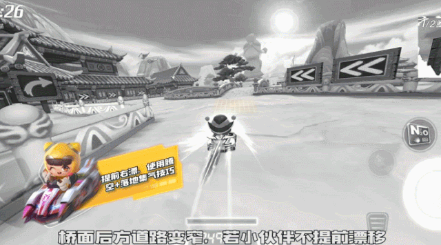 当路段变窄时,可以结合腾空漂移+落地集气的技巧,驶入桥面的同时集满氮气。