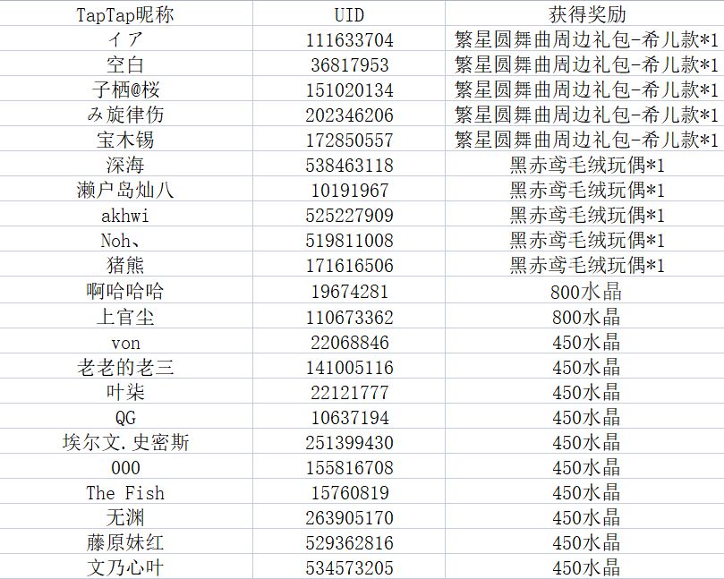 如果有发现统计错误可以在本帖回复,也可以在TapTap交流群中@论坛活动发奖员(记住是管理员哦)。