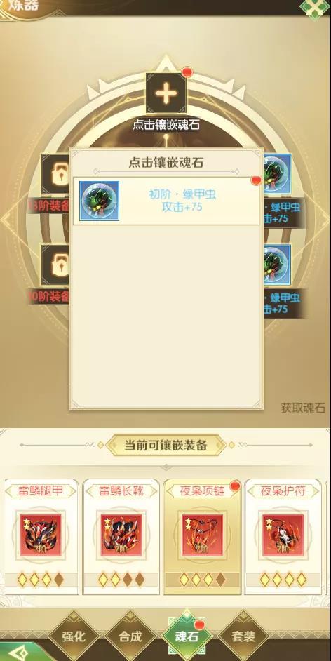 魂石是提升装备战力的主要方式之一,各位狩猎者可以通过镶嵌魂石来提升装备属性以及装备战力,魂石的阶级越高,加成也越高。