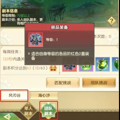 当玩家等级达到70级时,可以挑战团队副本—风刃谷。风刃谷会根据玩家等级来掉落相对应的装备,等级越高,可掉落的装备越好。