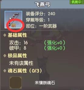 装备的阶级分为1-10阶,阶级越高,战力加成与属性越多。